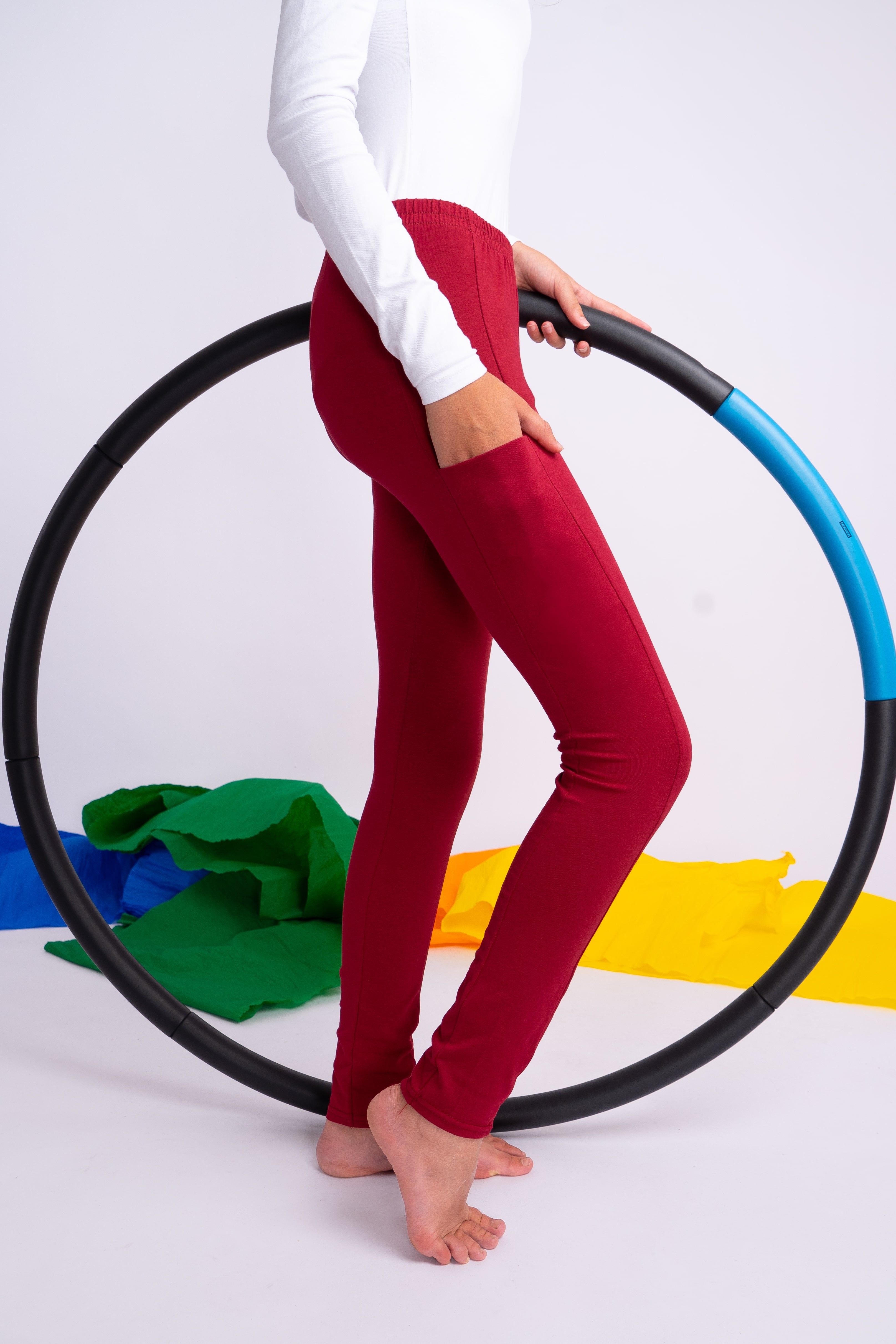 Bordowe LEGGINSY Z KIESZENIAMI długie bawełniane getry dziewczęce