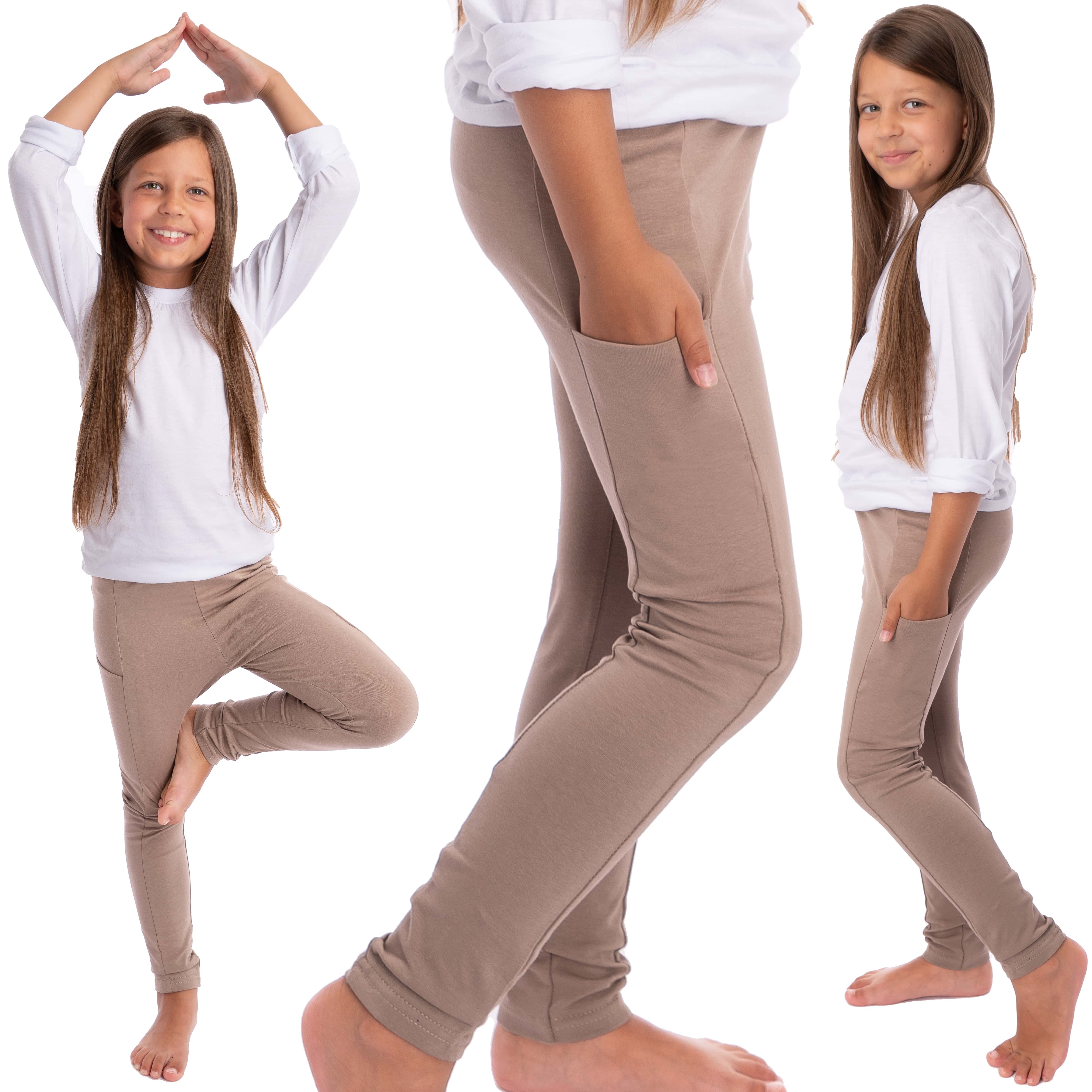 Beżowe LEGGINSY Z KIESZENIAMI długie bawełniane getry dziewczęce