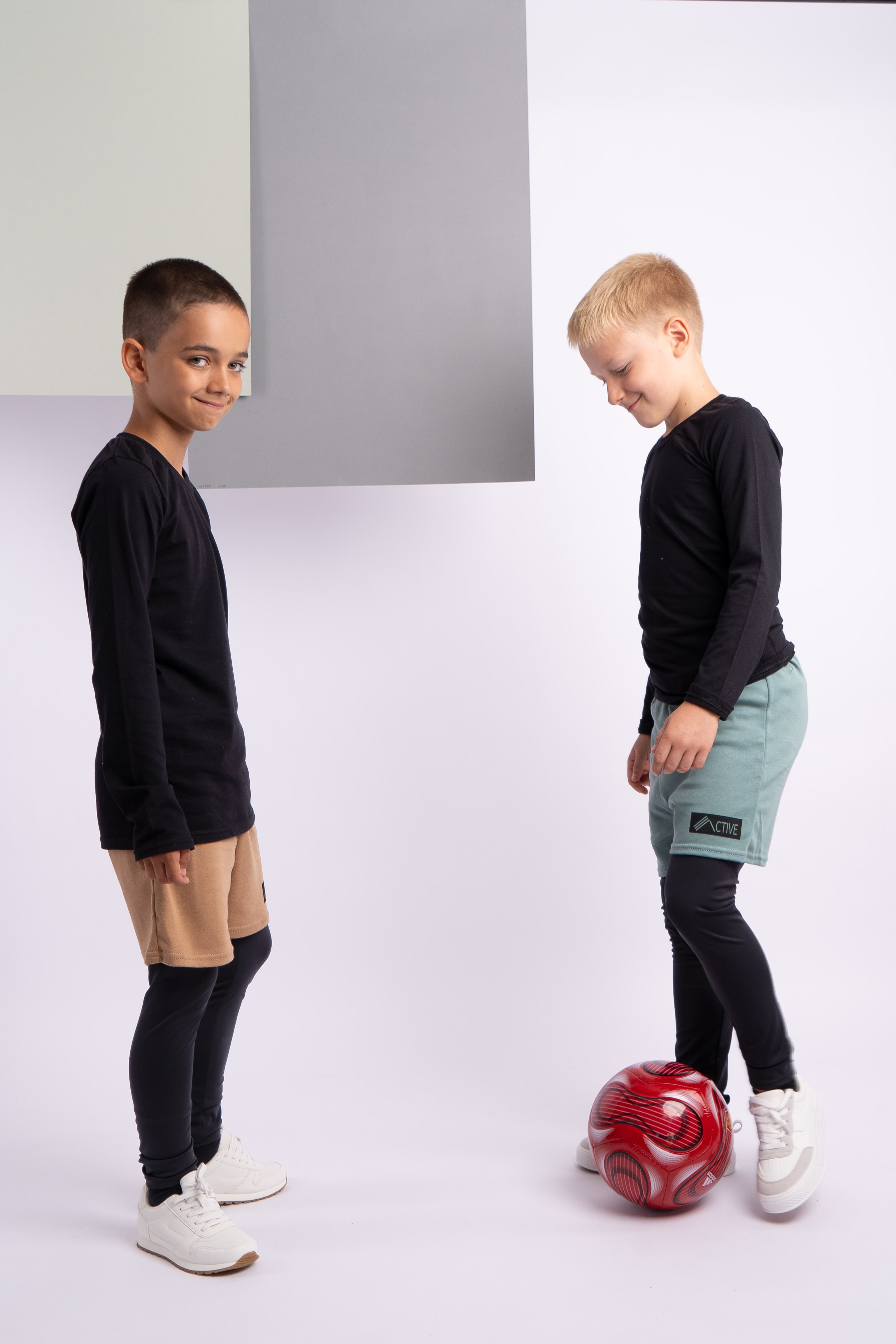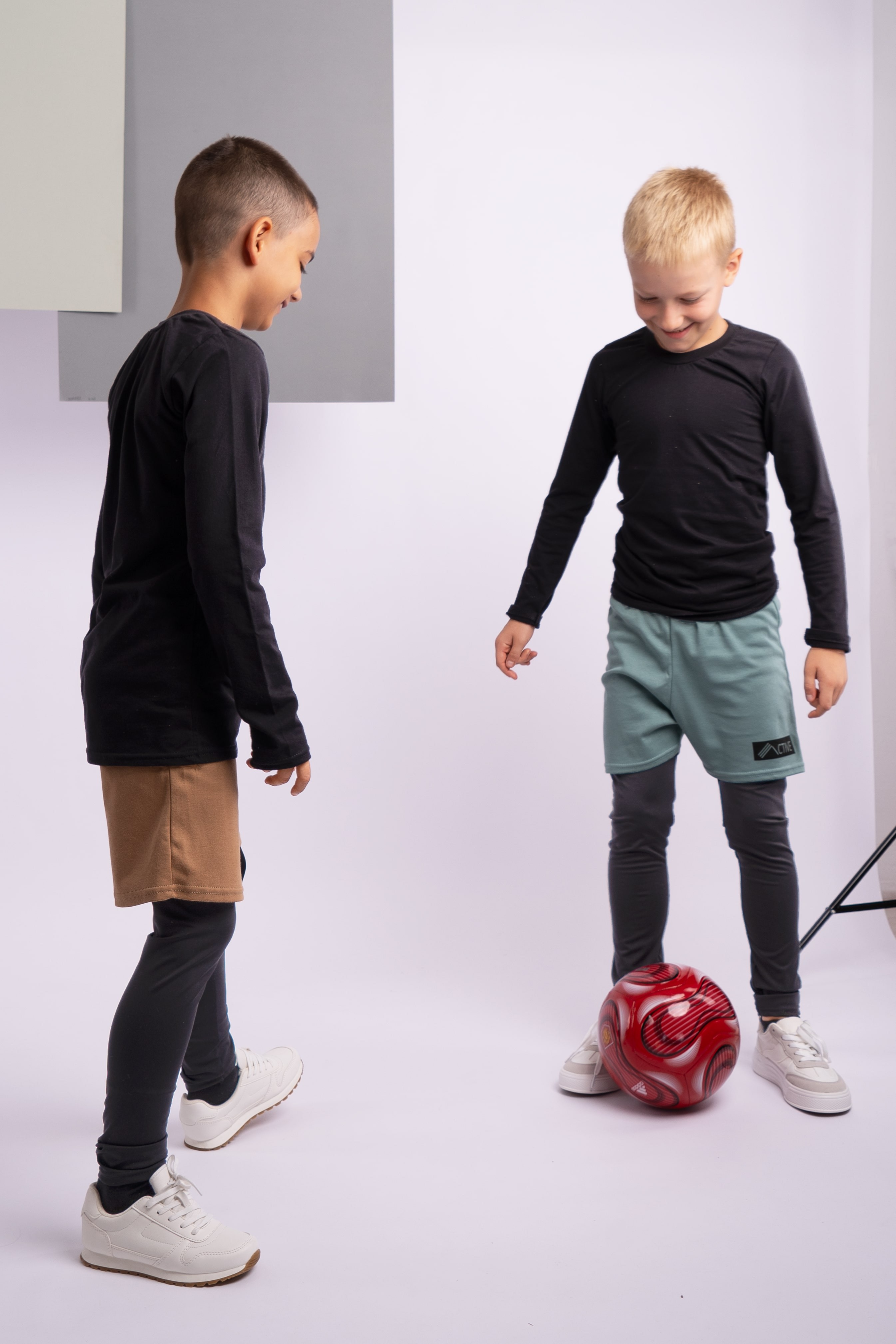 Uniwersalny krój- legginsy zostały zaprojektowane z myślą o chłopcach i dziewczynkach. Mają neutralny desing, który pasuje do każdego stroju sportowego lub jako samodzielna baza stylizacji