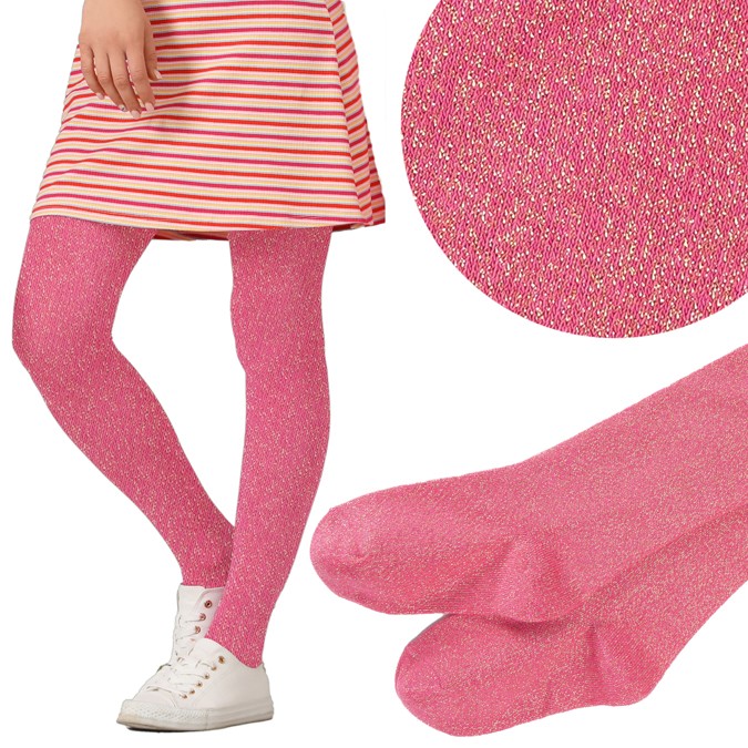 Dziewczęce różowe rajstopy z błyszczącą nitką są idealnym dodatkiem do wielu stylizacji i pasują na każdą okazję. Rajstopki bawełniane to miękkie, i przyjazne dla skóry rozwiązanie.