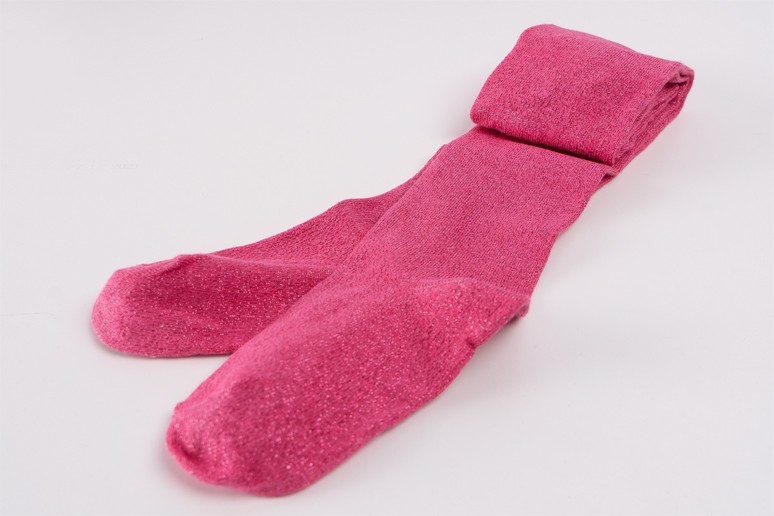 Amarantowe rajstopy bawełniane z różową błyszczącą nitką dziewczęce brokatowe
