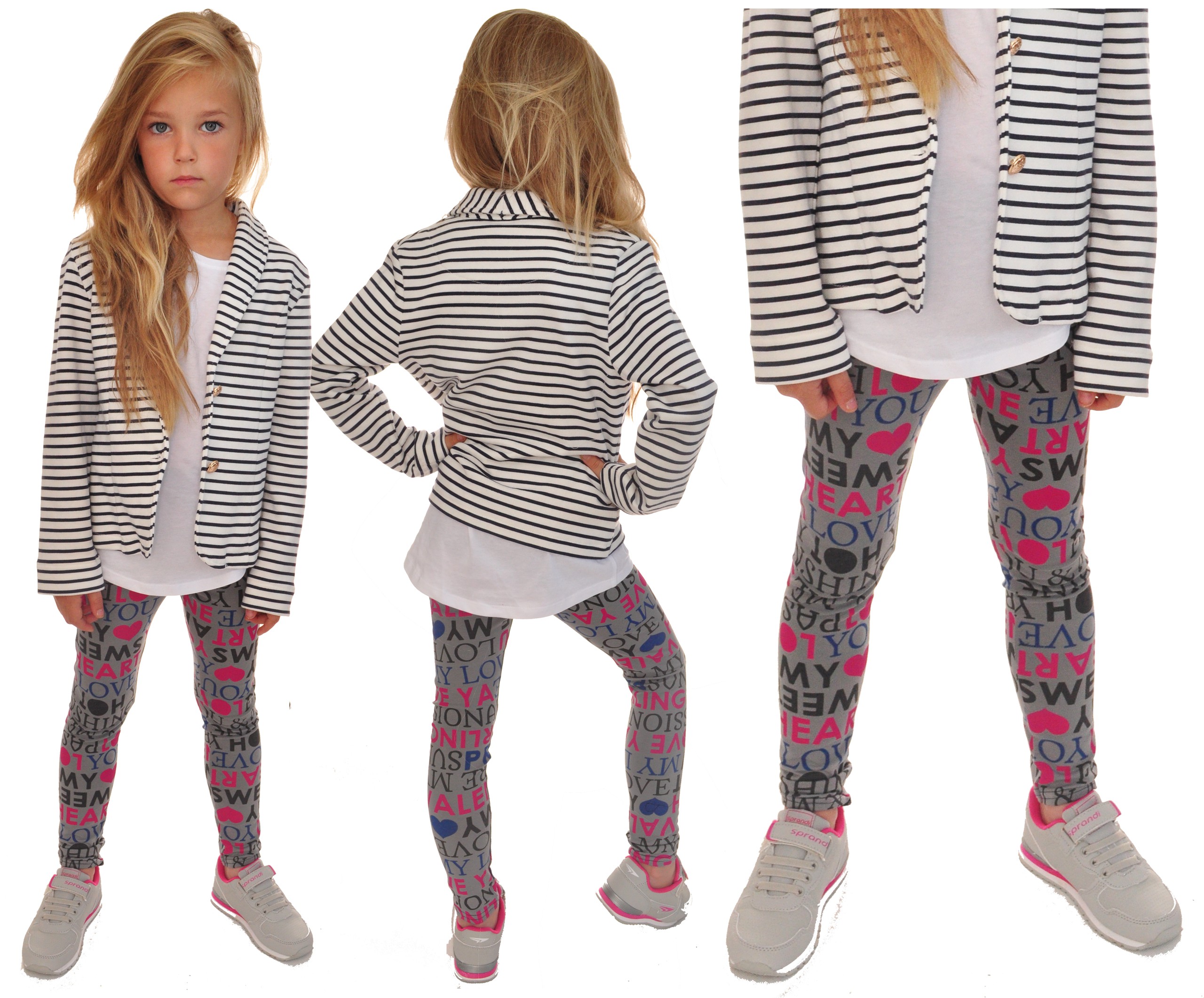 Szare legginsy dziewczęce z napisami.