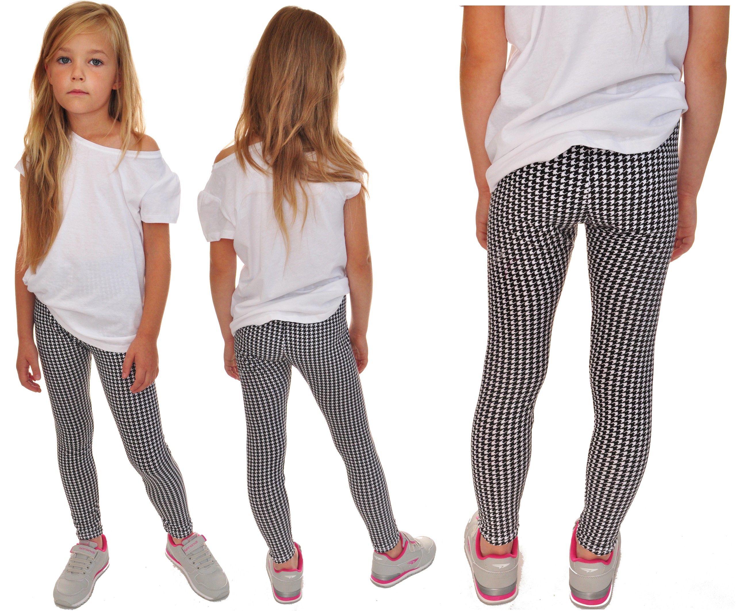 Legginsy dziewczęce z w biało-czarną pepitkę.