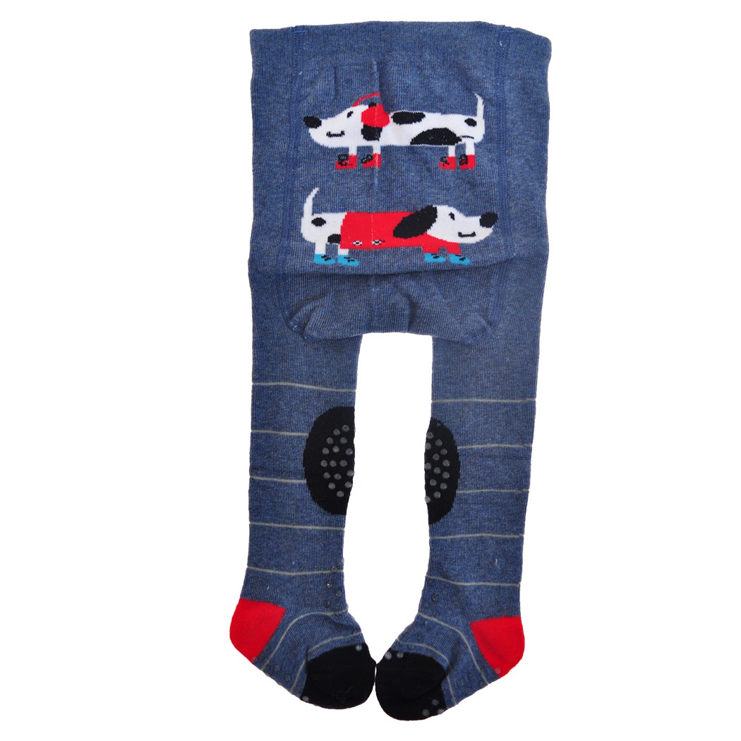 Rajstopy chłopięce do raczkowania w kolorze jeans z potrójnym ABS z jamnikami.