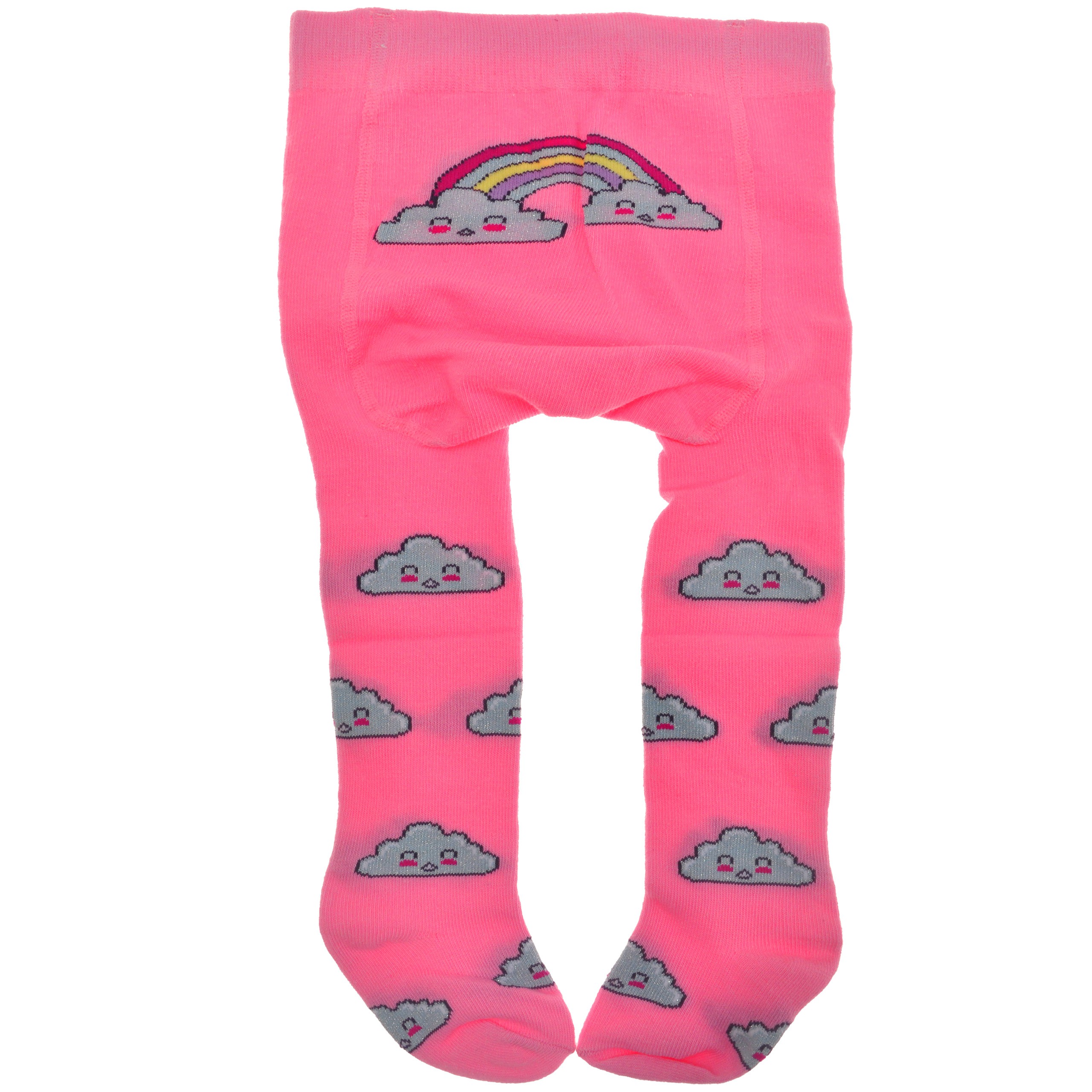 Różowe rajstopki dla dziewczynki z tęczą i chmurkami.