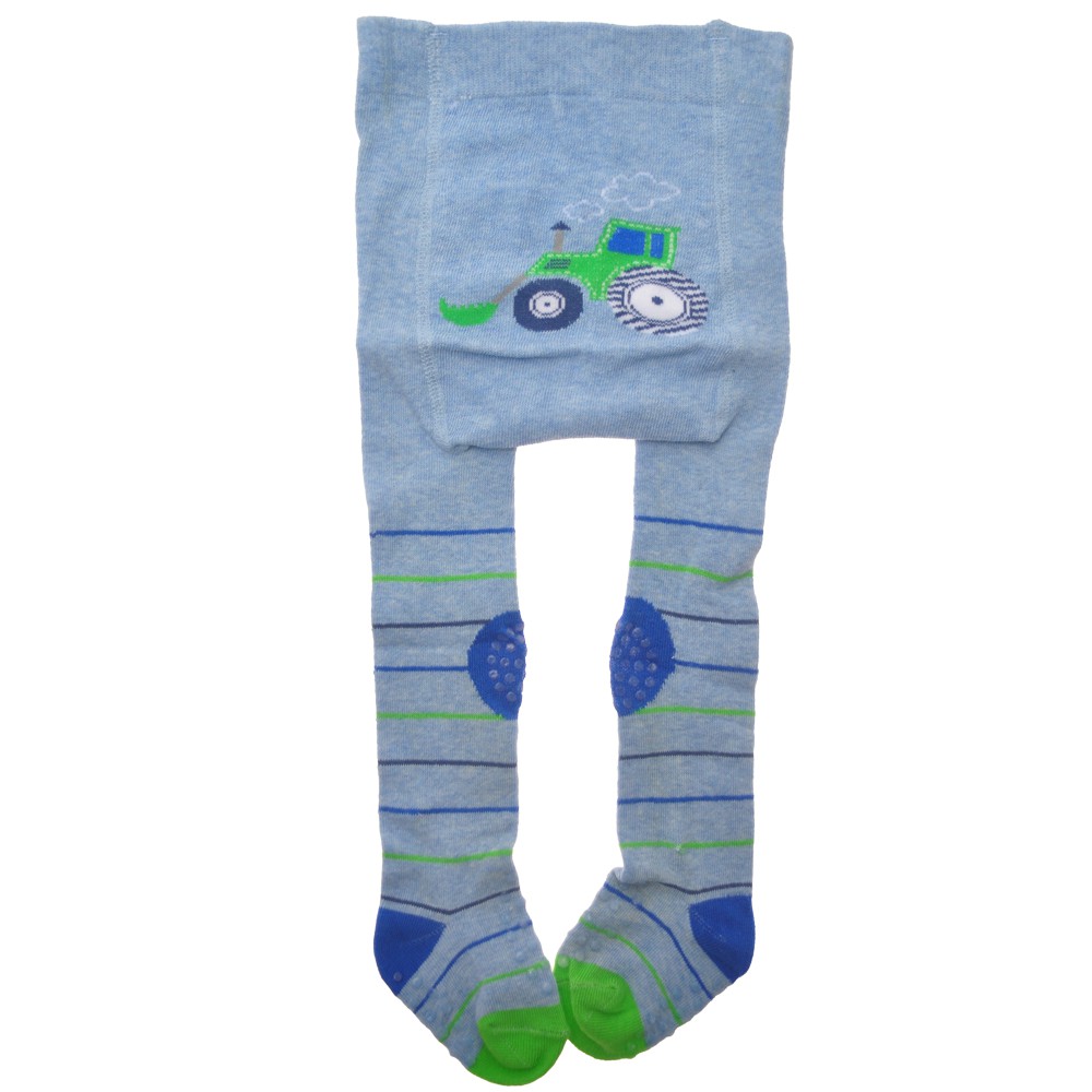 Niebieskie rajstopy chłopięce do raczkowania z potrójnym ABS z traktorem.