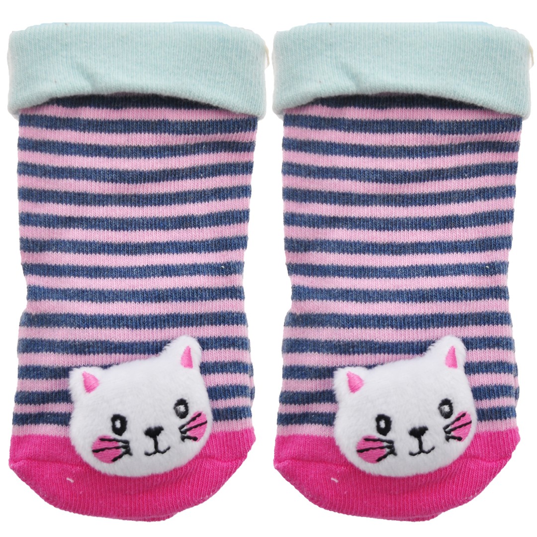 Skarpetki bawełniane dziewczęce z grzechotką w kształcie kotka.