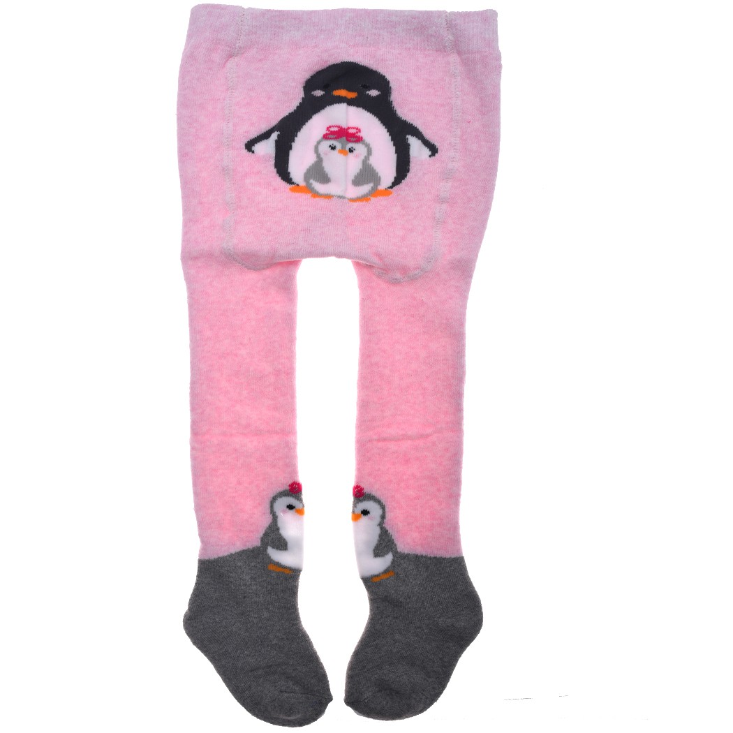 RAJSTOPY frotte różowe z pingwinkami wzór 557