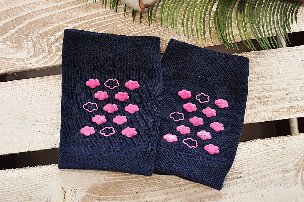 Nakolanniki do raczkowania w kolorze granatowym z różowym ABS w kształcie chmurek.
