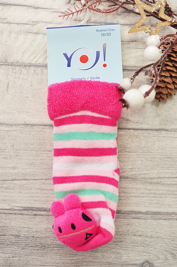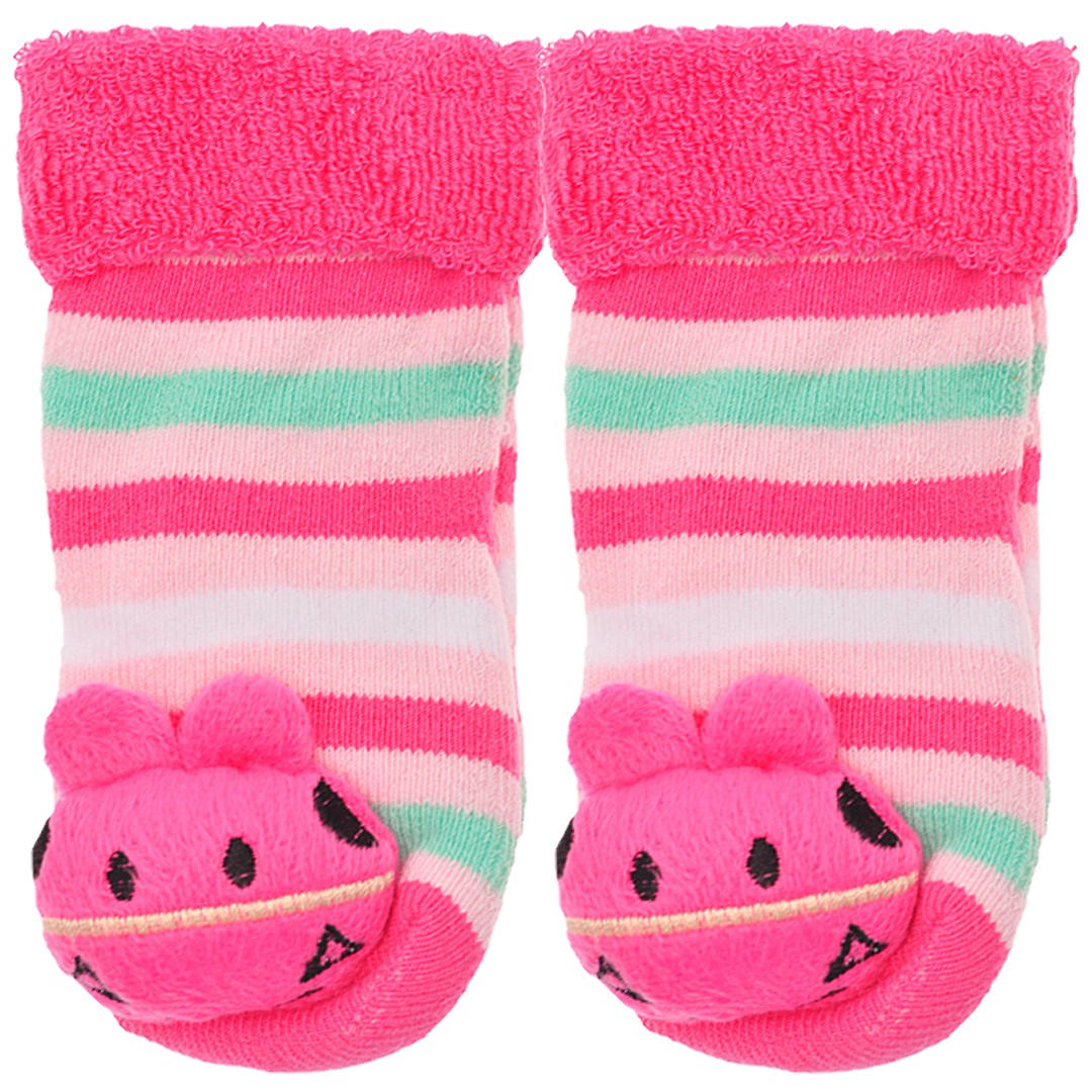 Skarpety frotte z grzechotką dziewczęce skarpetki w paski z różowym konikiem