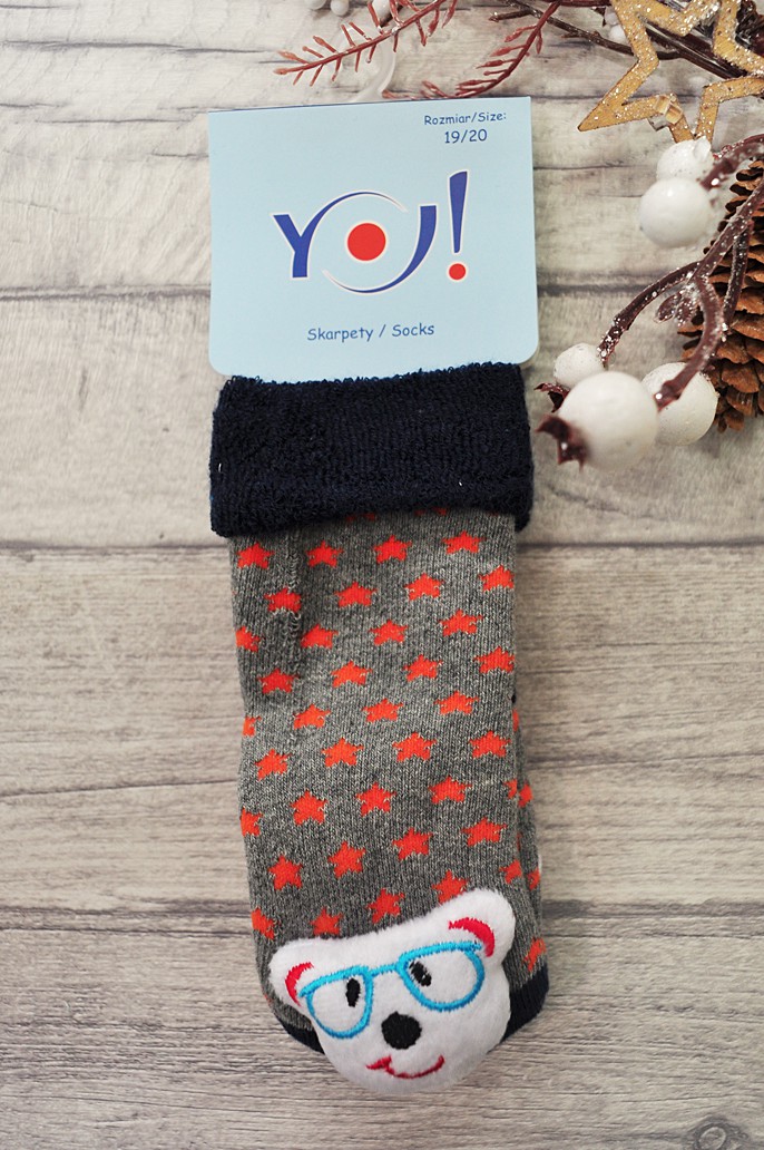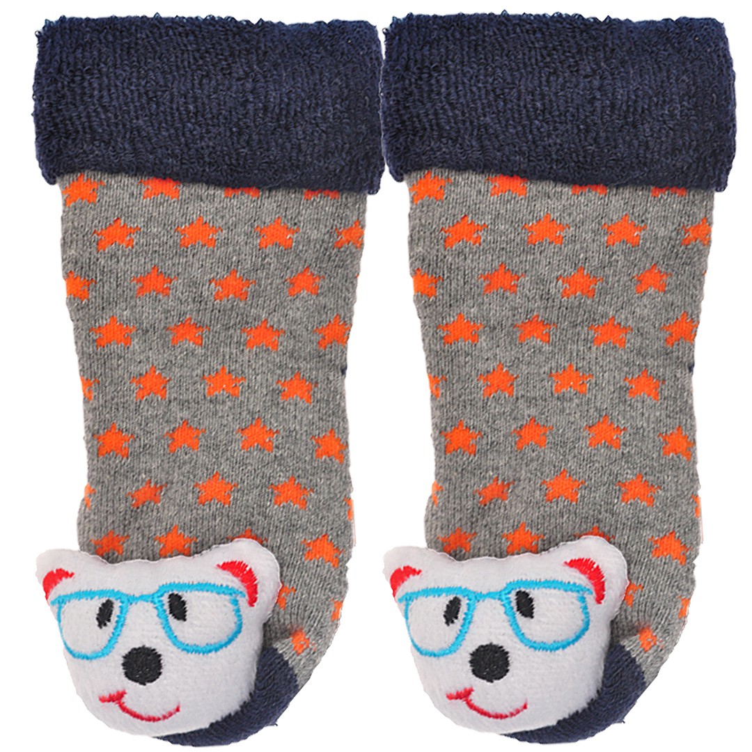 Skarpety frotte z grzechotką chłopięce skarpetki szare w gwiazdki z misiem