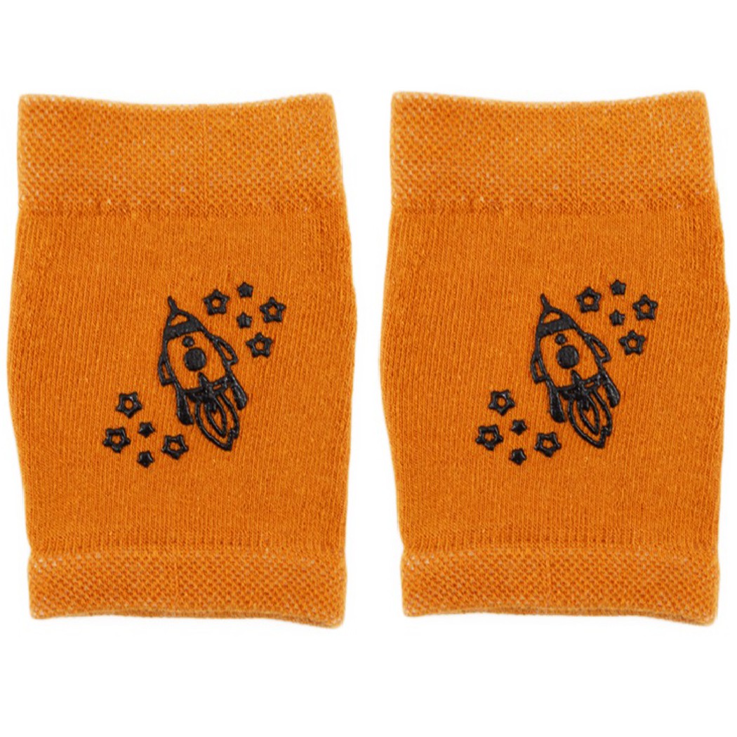 Nakolanniki do raczkowania w kolorze musztardowym z granatowym nadrukiem ABS w rakiety.