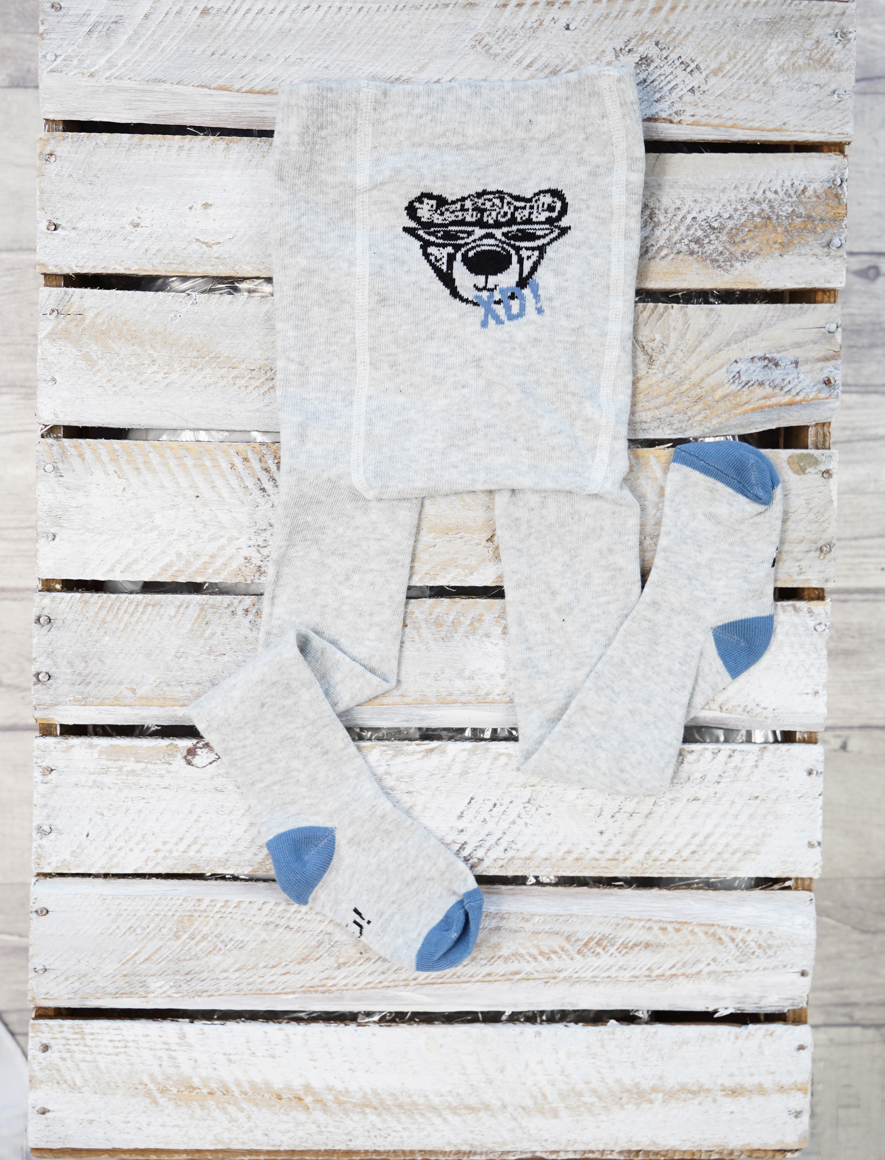 RAJSTOPY bawełniane szare z misiem XD wzór 480