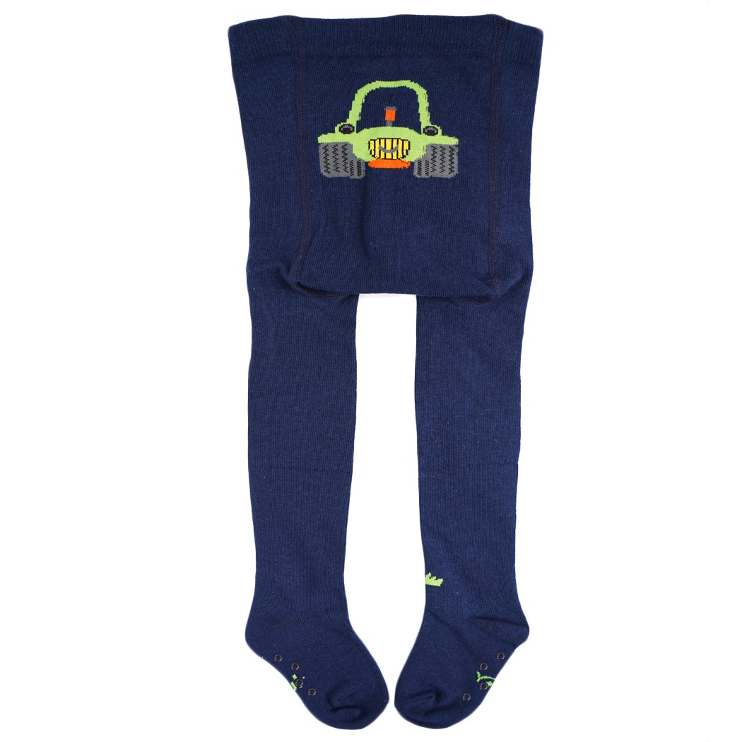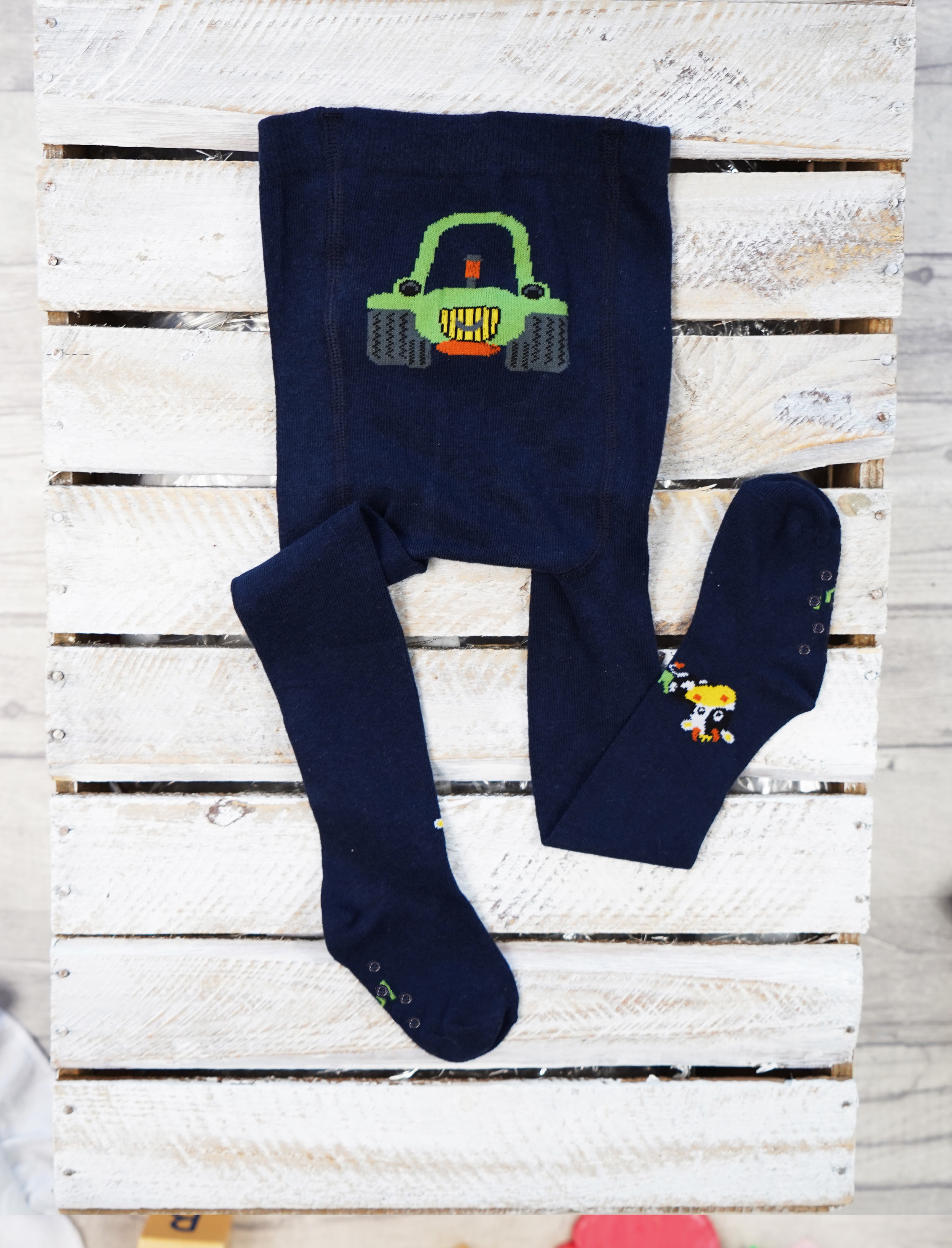 Granatowe rajstopki bawełniane dla chłopca z traktorem i ABSem