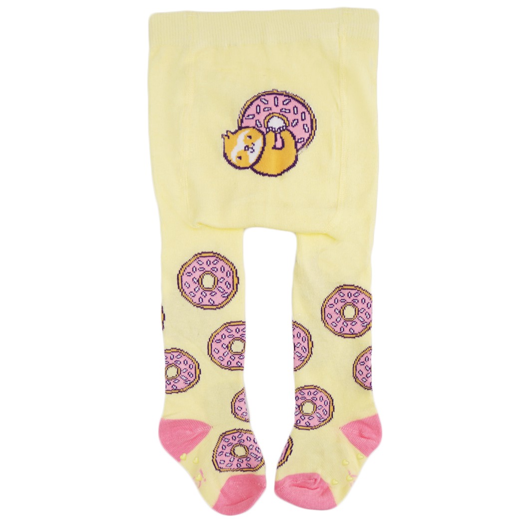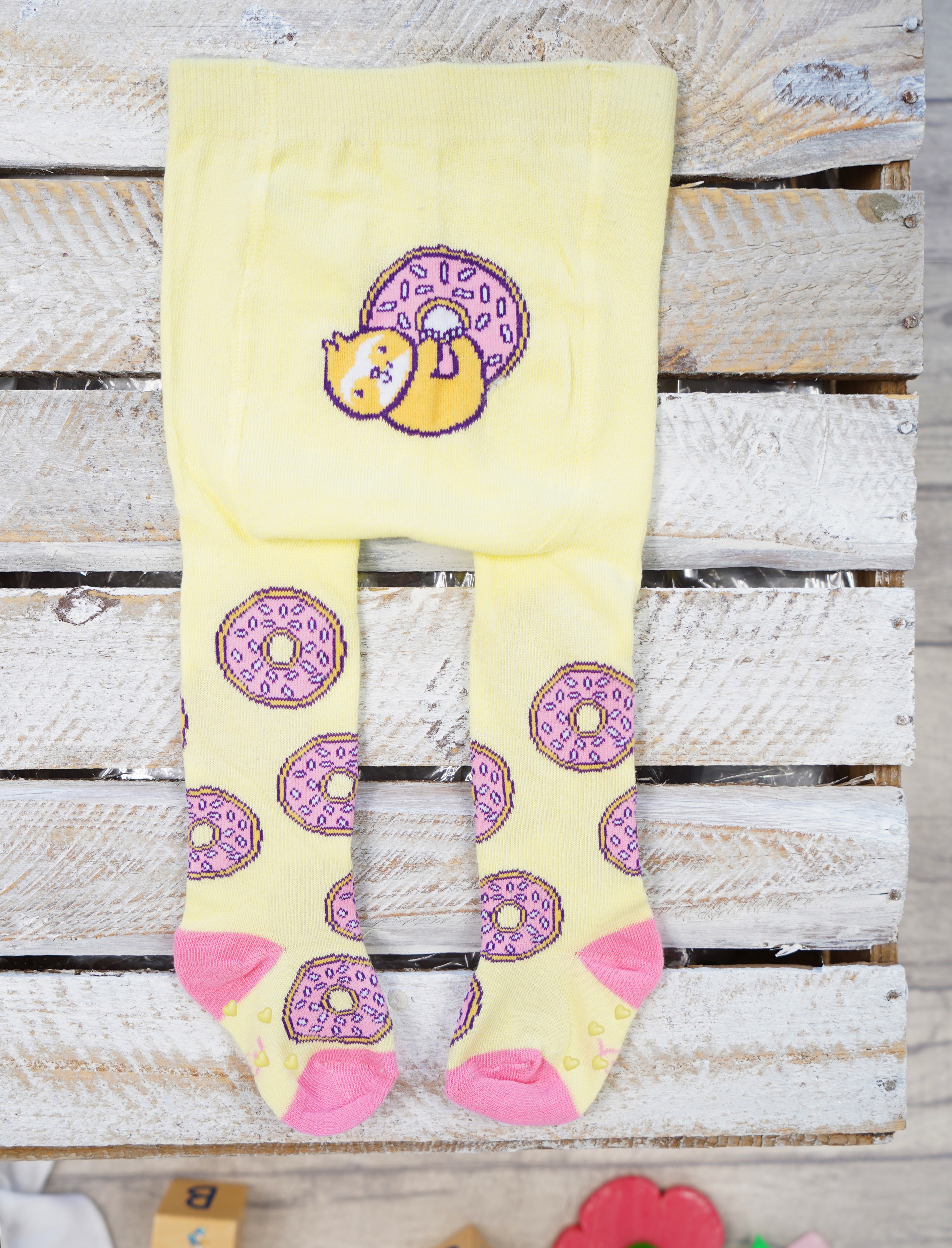 Żółte rajstopki bawełniane dla dziewczynki z donutem i ABSem