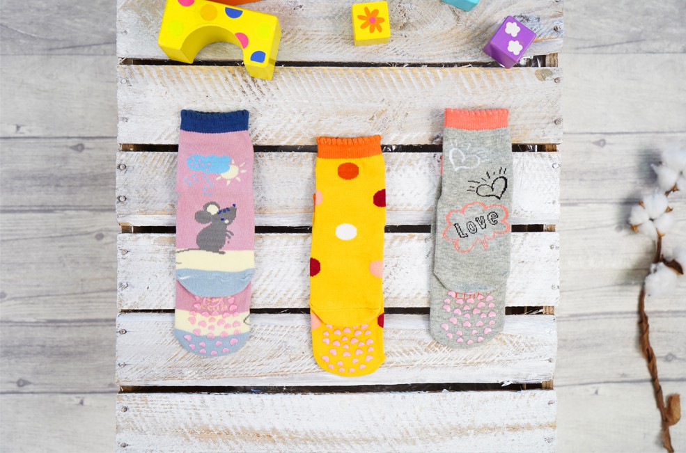 Skarpetki wzorzyste dziewczęce z wzorami i ABSem- komplet 3 par