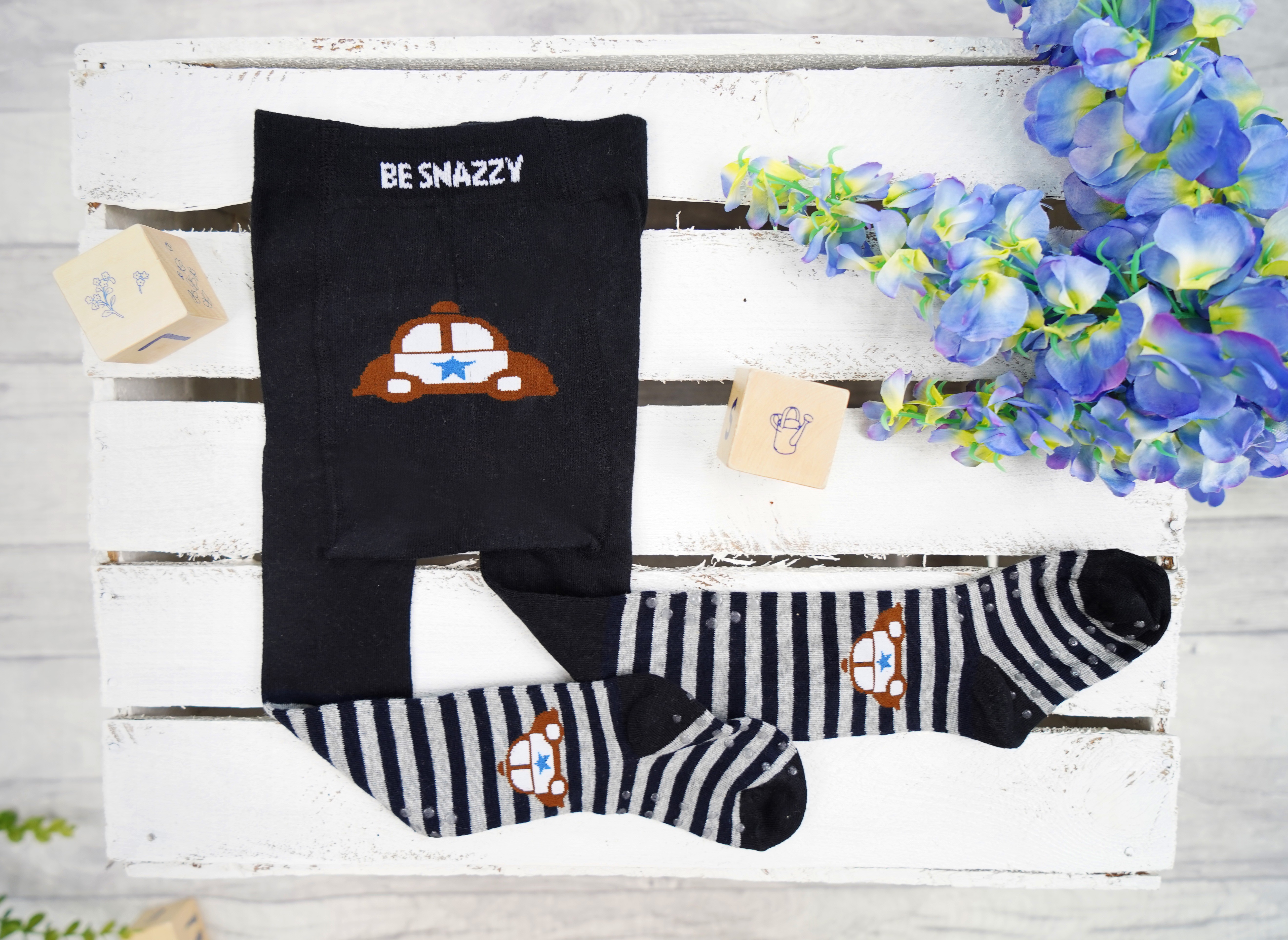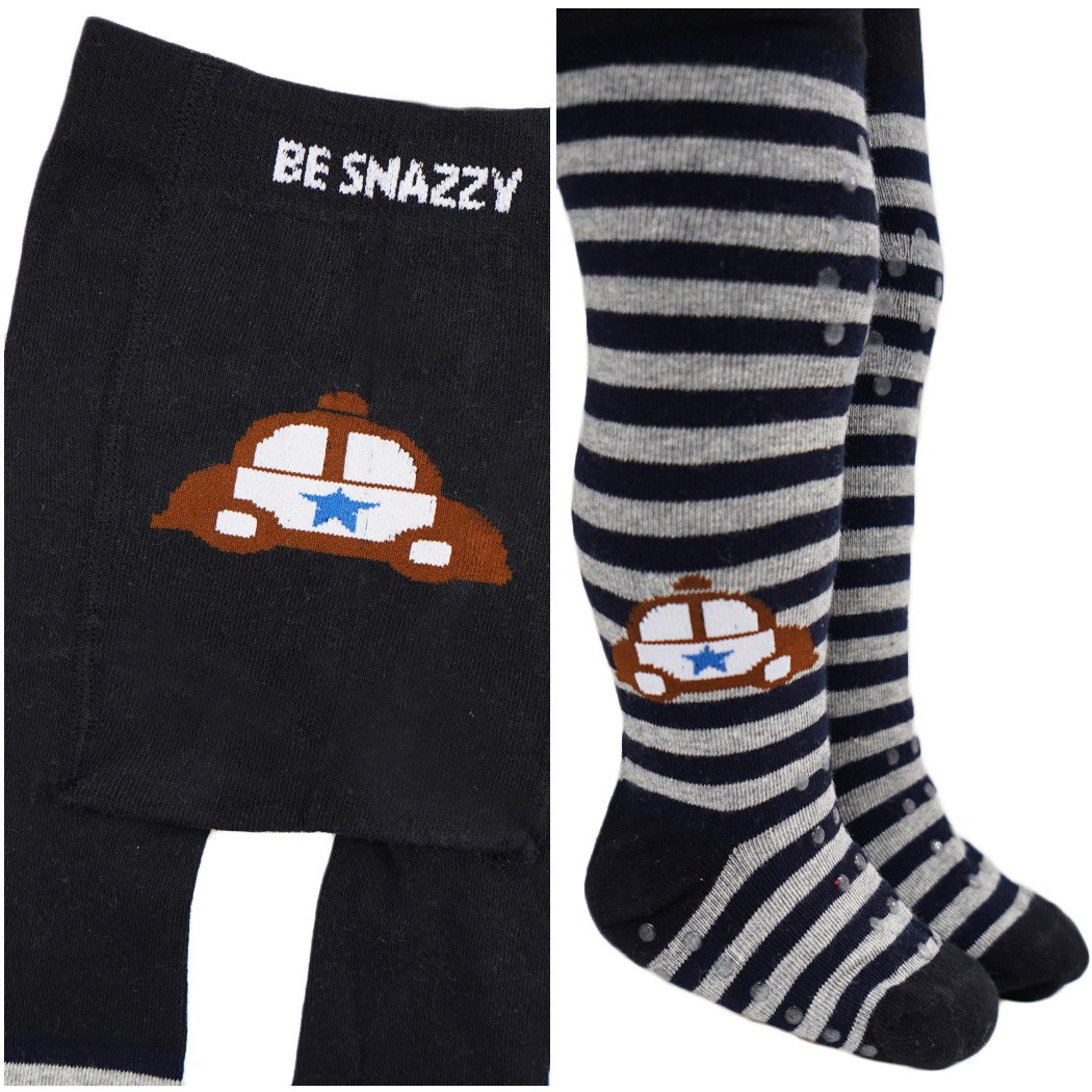 Czarne rajstopy chłopięce do raczkowania z potrójnym ABSem z samochodem.