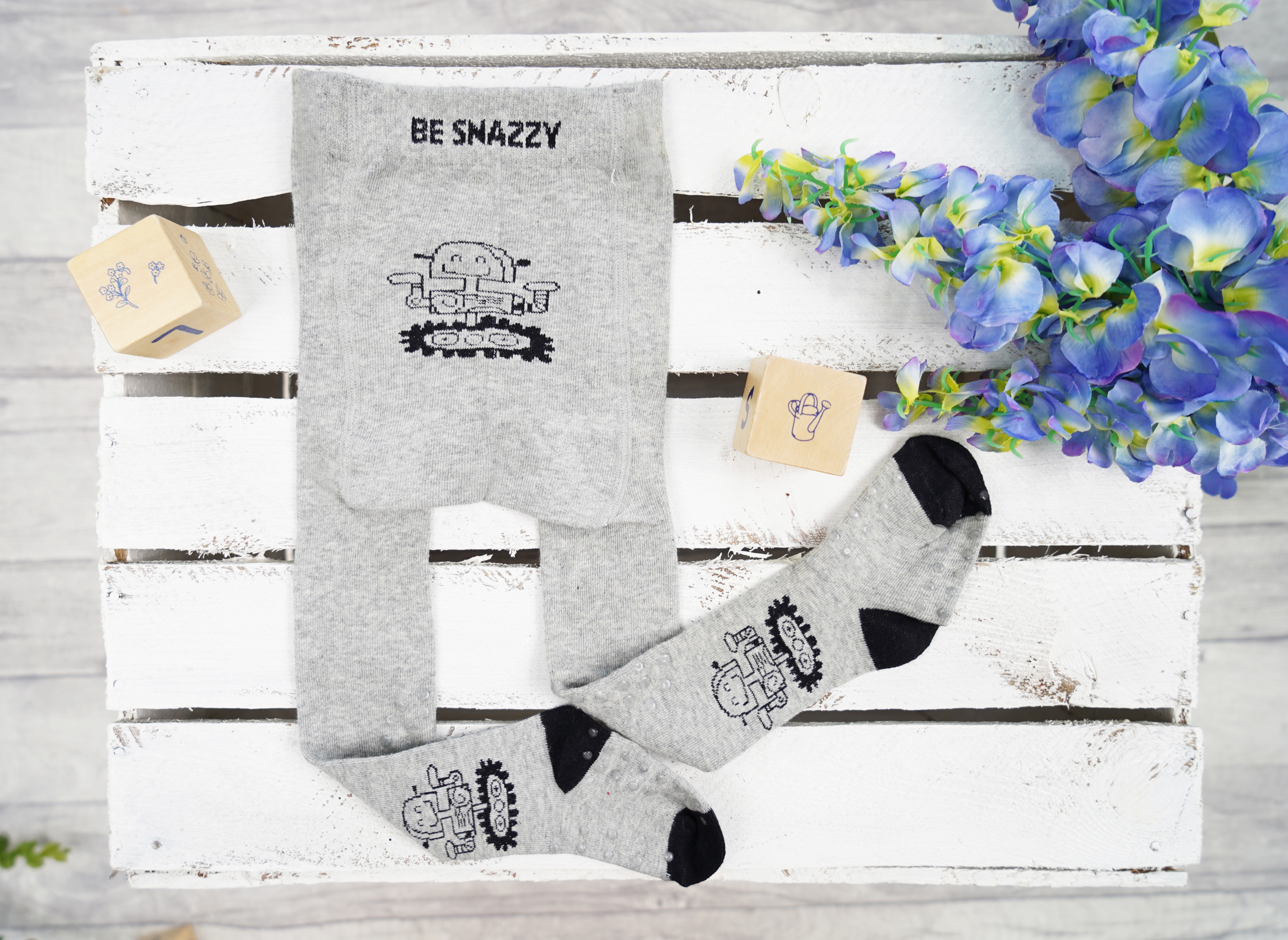 Szare rajstopy dziecięce do raczkowania z potrójnym ABSem z robotem.