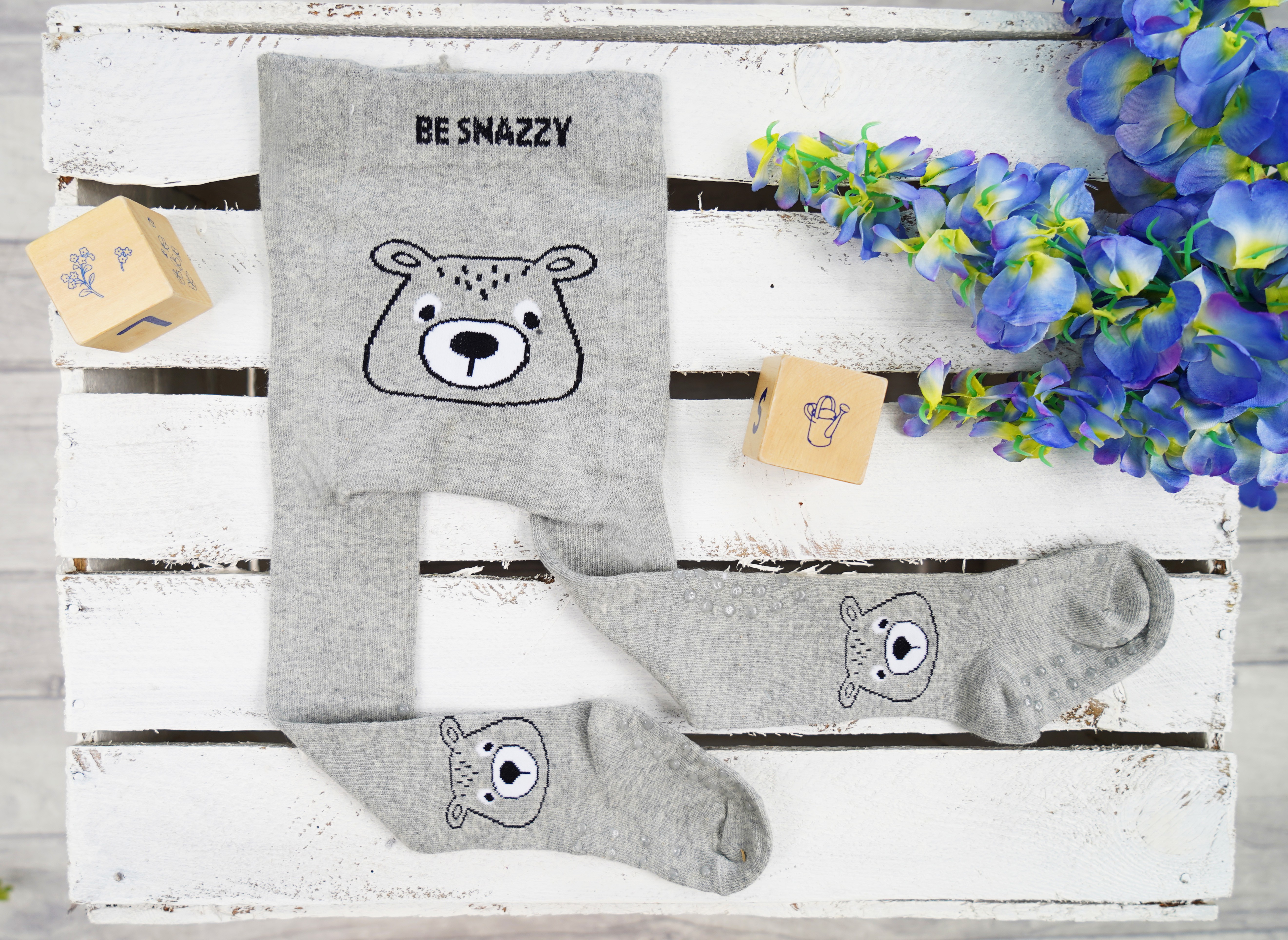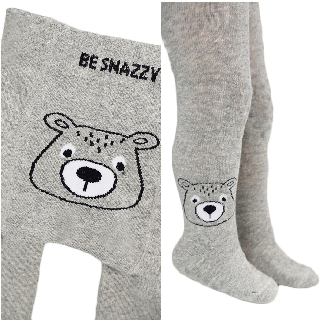 Szare rajstopy dziecięce do raczkowania z potrójnym ABSem z misiem.