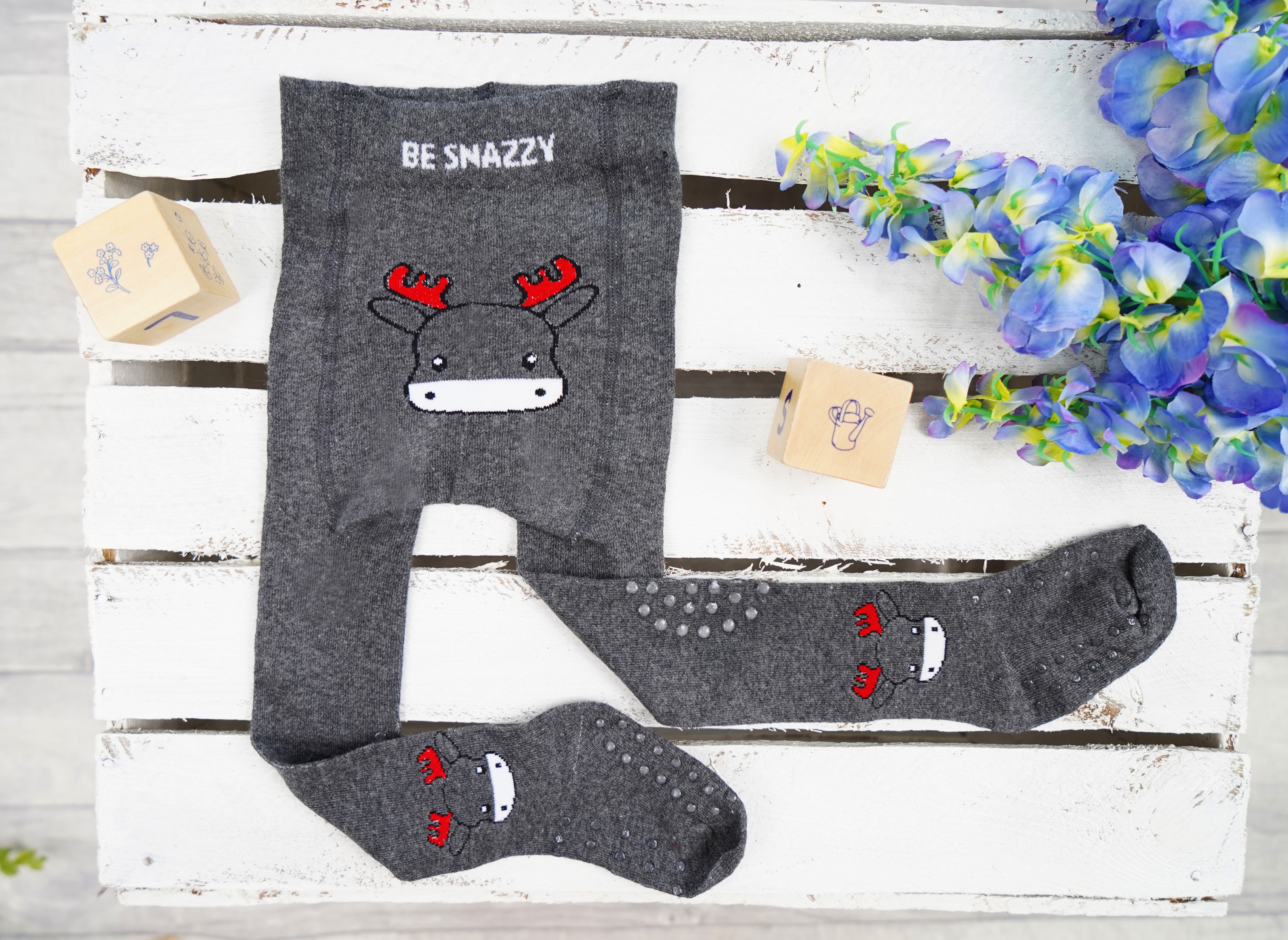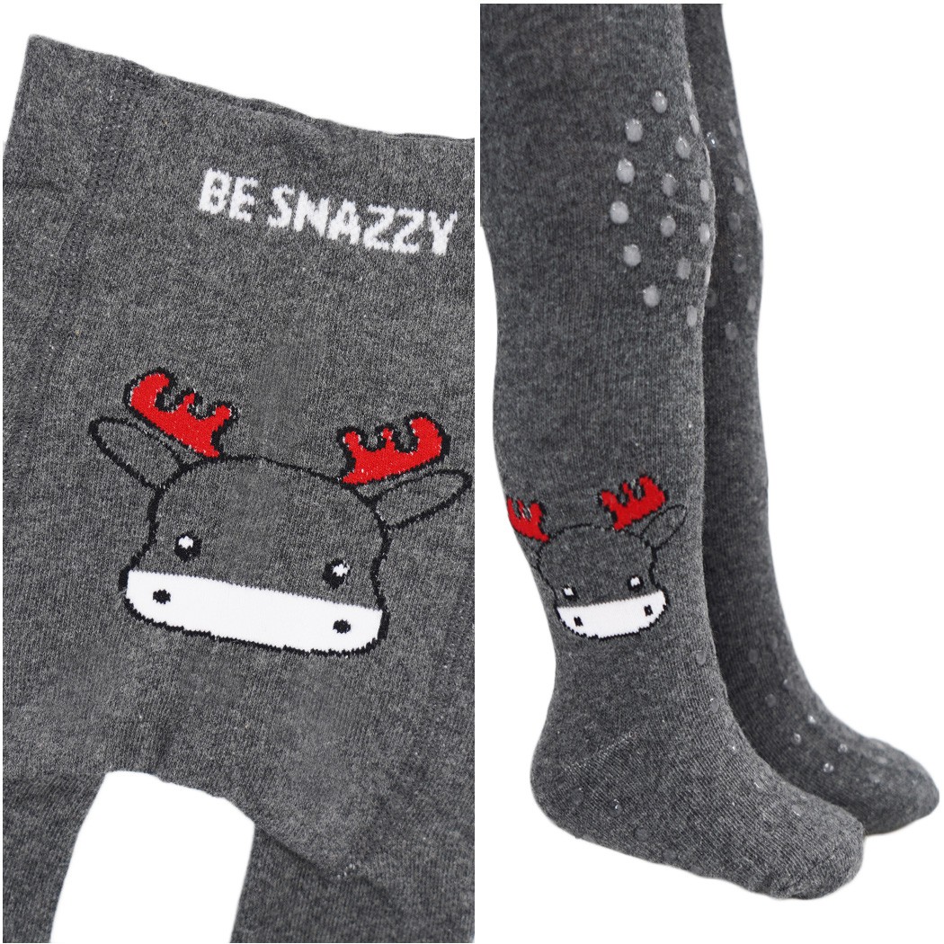 Grafitowe rajstopy dziecięce do raczkowania z potrójnym ABSem z reniferem.