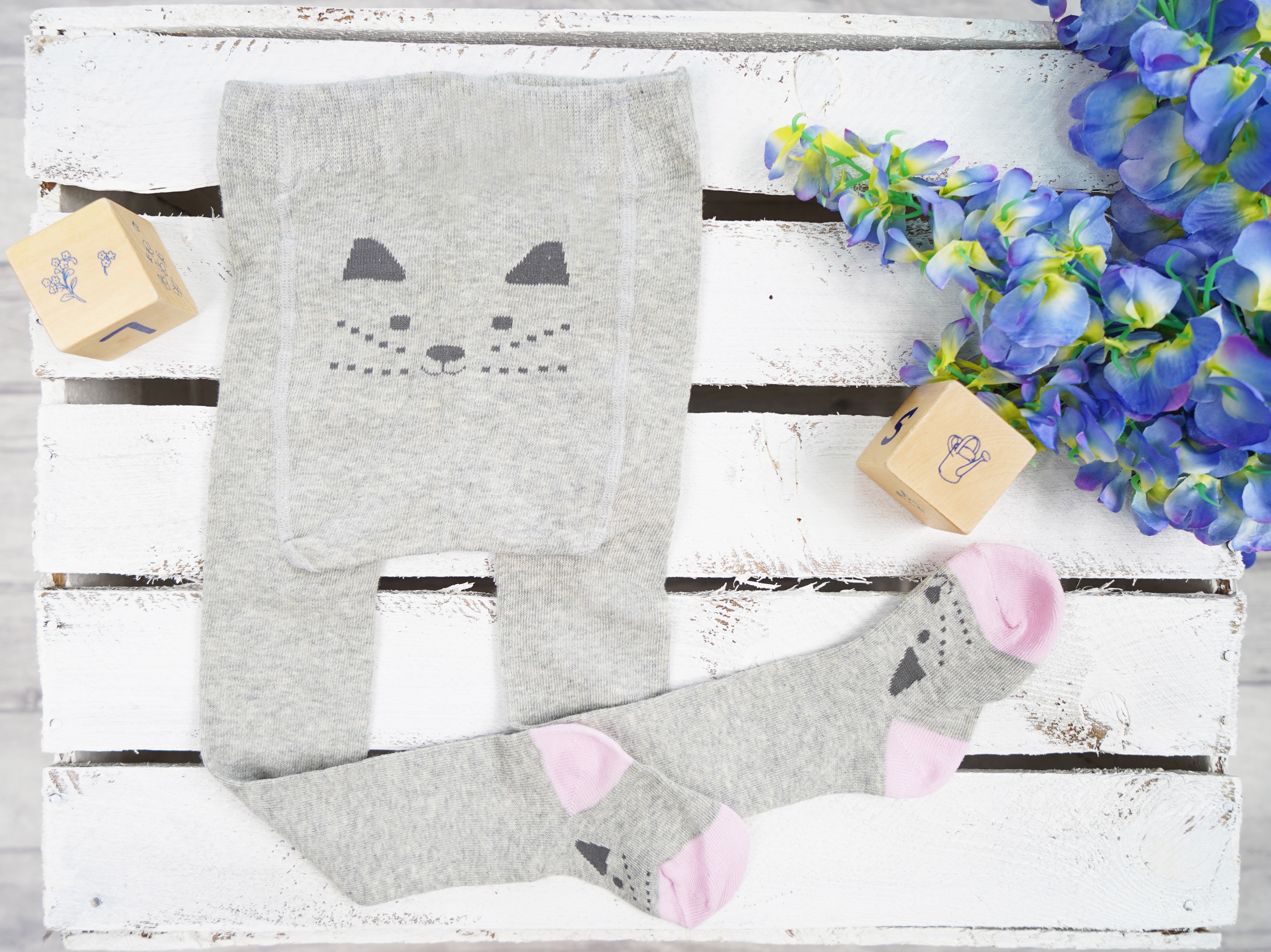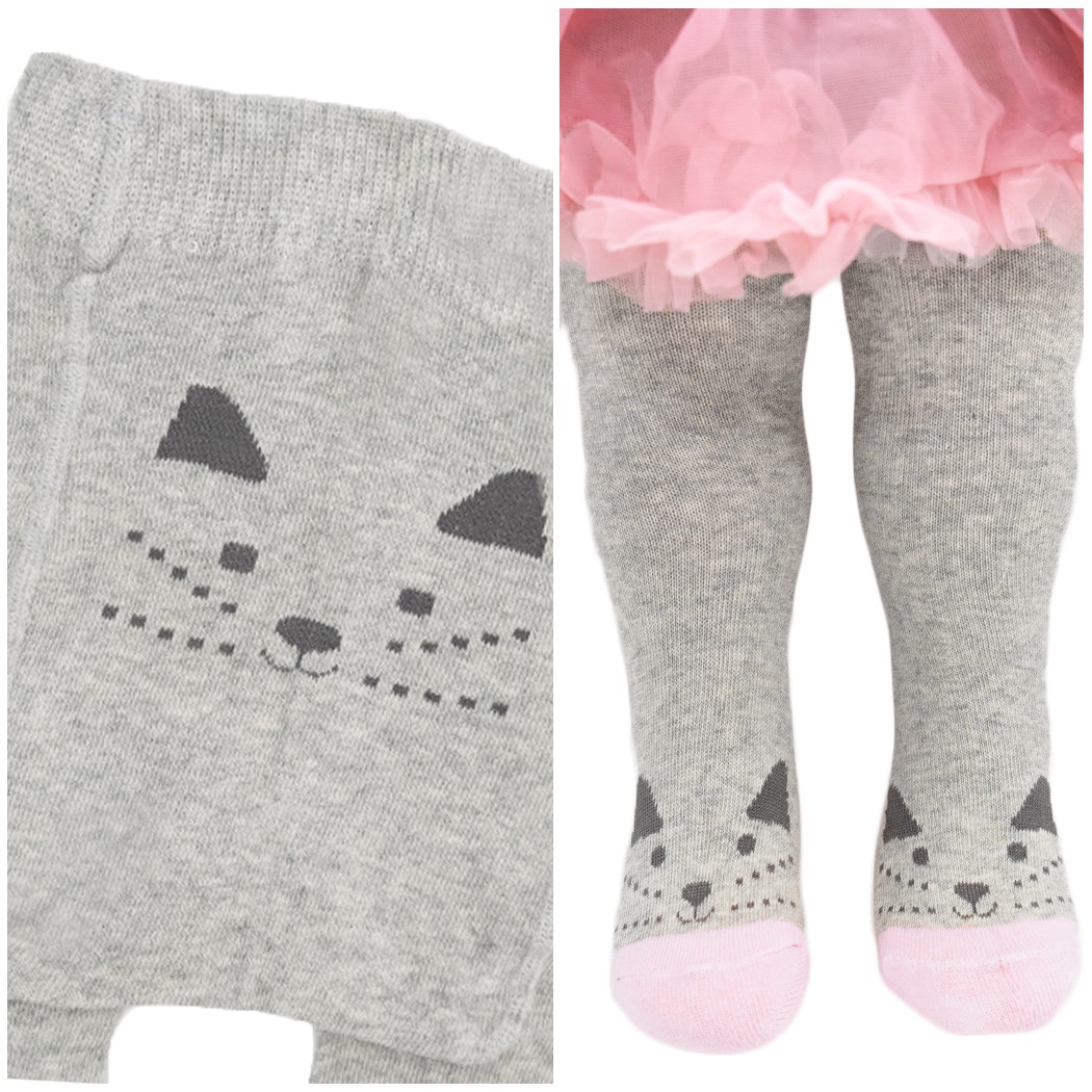 Szare rajstopki bawełniane dla dziewczynki z kotkiem.