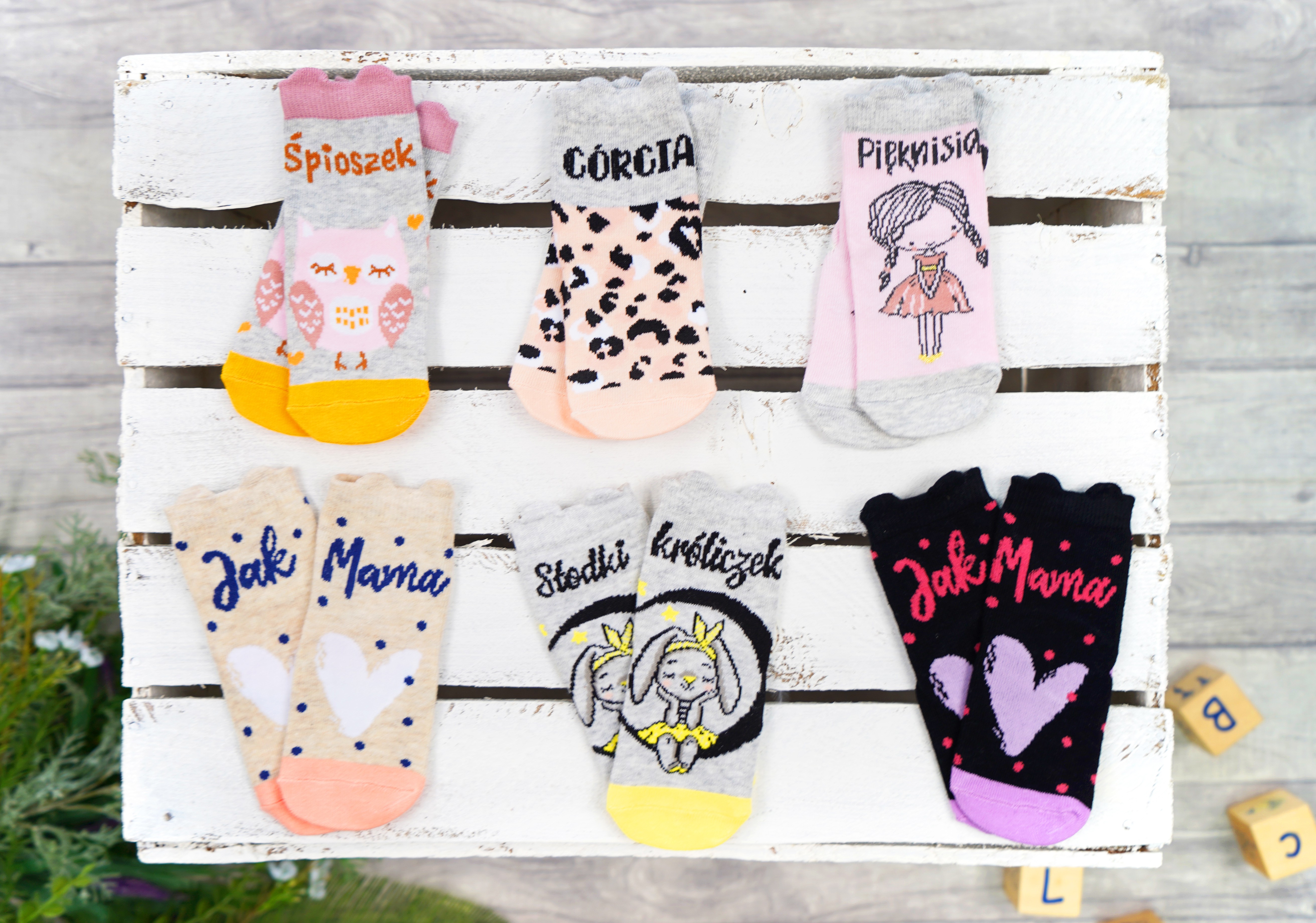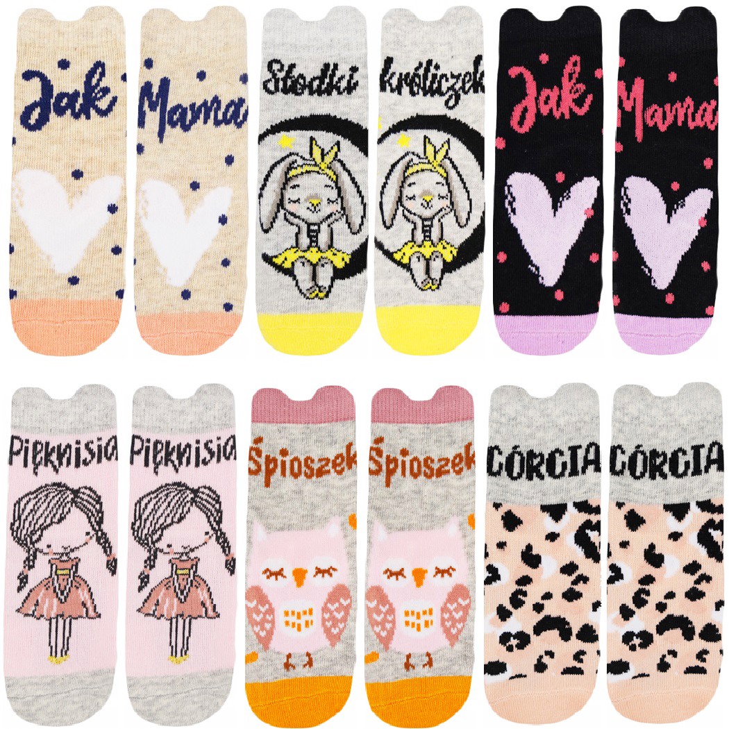 6 PAK SKARPETKI skarpety dziewczęce z napisami i uszami 3D