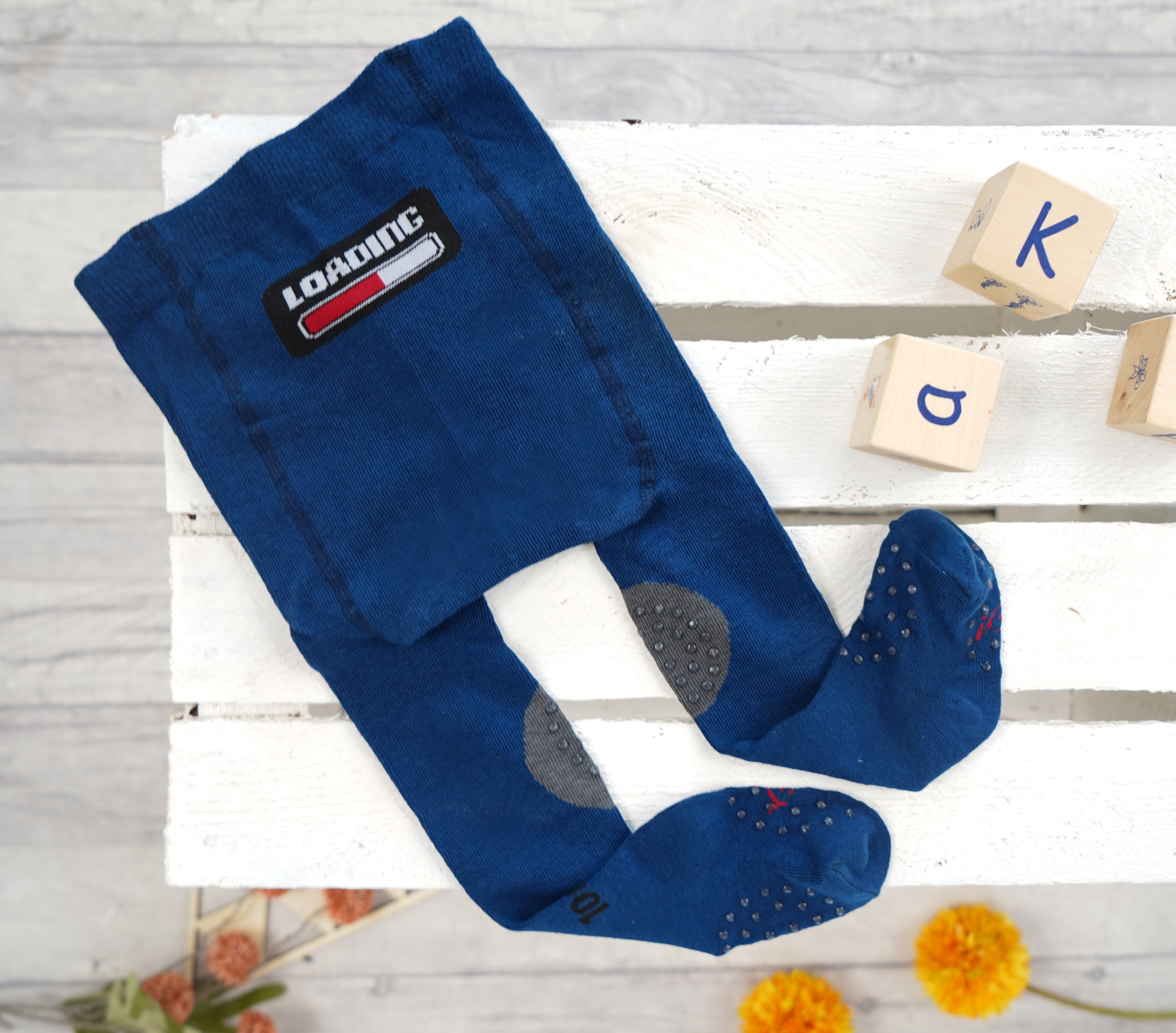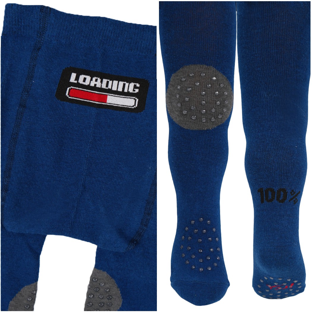 Granatowe rajstopy chłopięce do raczkowania z potrójnym ABSem z napisem.
