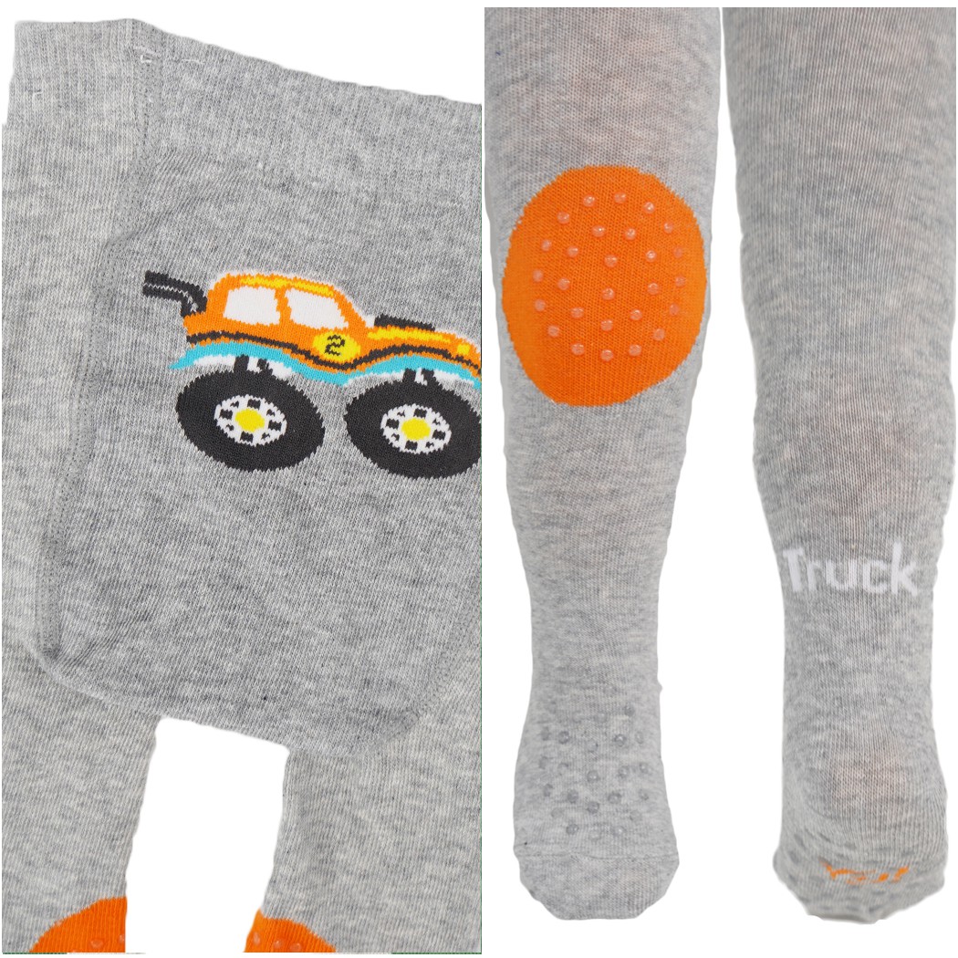 Szare chłopięce rajstopy do raczkowania z potrójnym ABSem z autem.