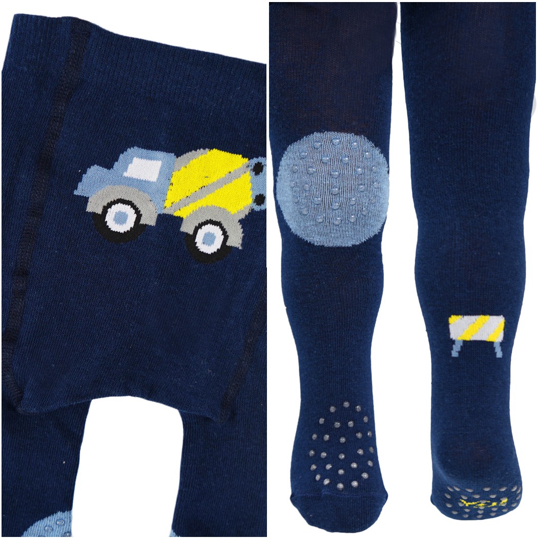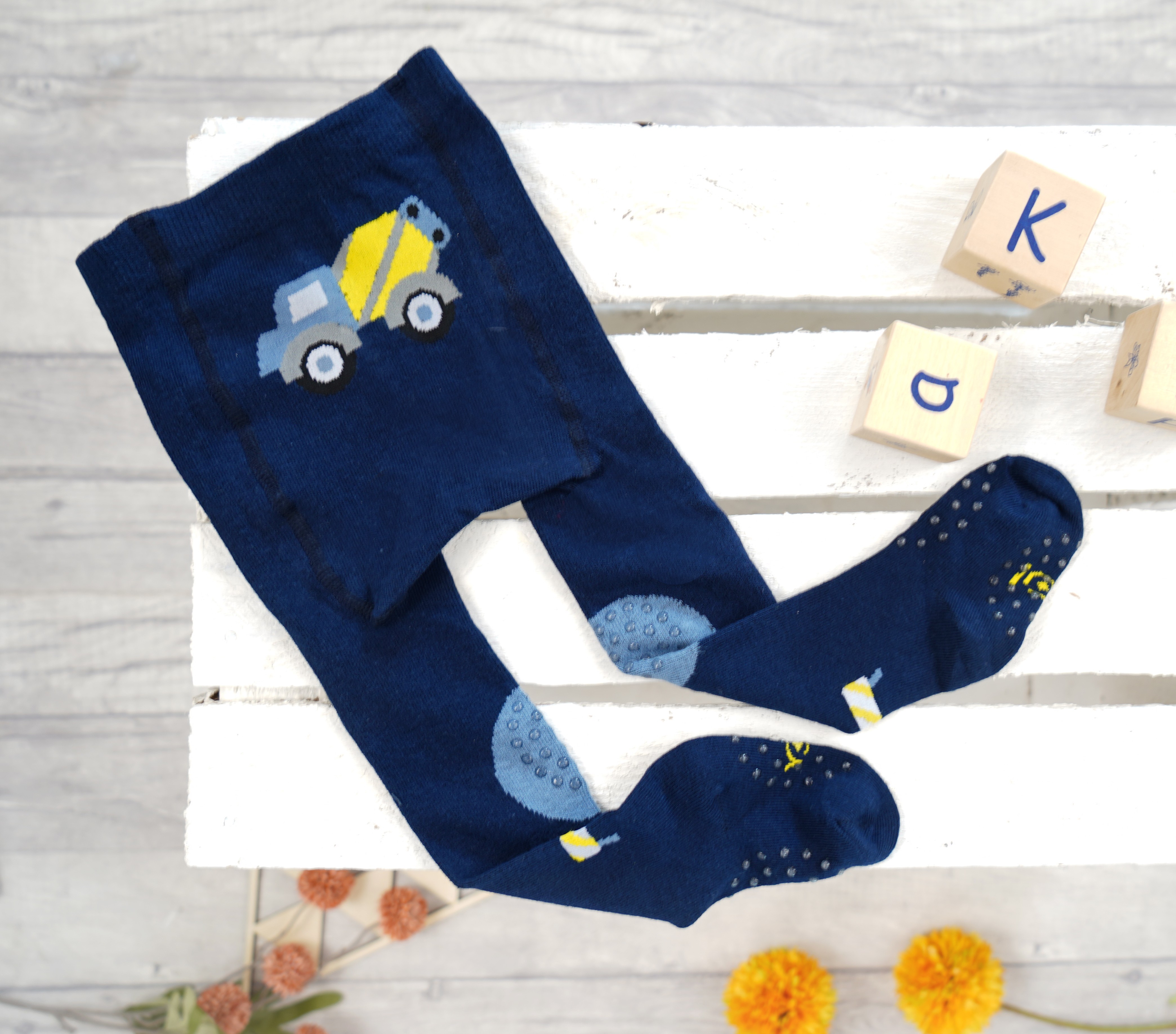 Granatowe rajstopy chłopięce do raczkowania z potrójnym ABSem z betoniarką.