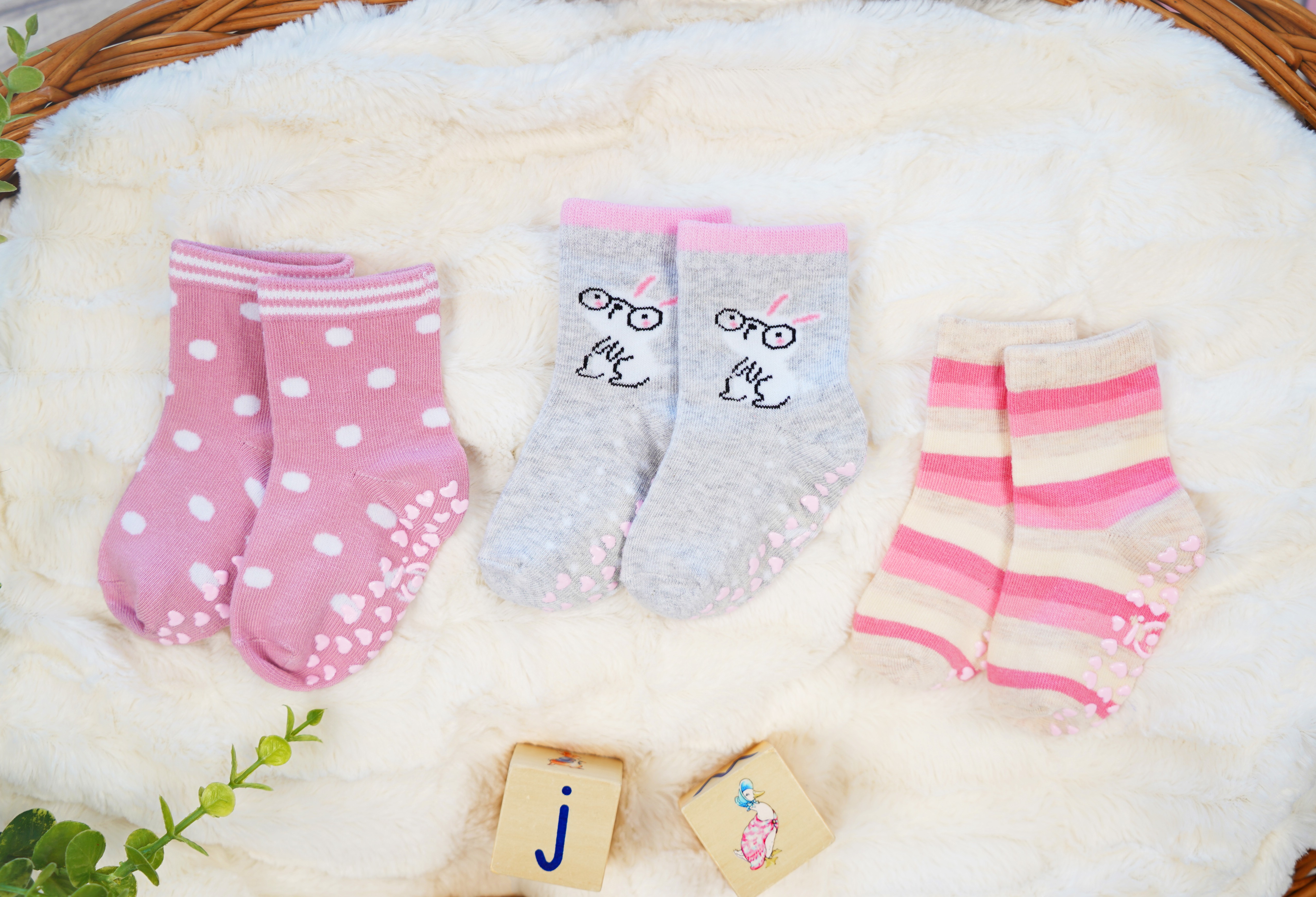 Skarpetki z motywem: paski, grochy i króliczek służą nie tylko jako ozdoba, ale przede wszystkim pełnią funkcję ochronną. Skarpety bawełniane dla dziewczynki przyczyniają się do utrzymania prawidłowej temperatury ciała dziecka. Zapewniają doskonały przepływ powietrza, dlatego można nosić je nawet w bardzo ciepłe dni.