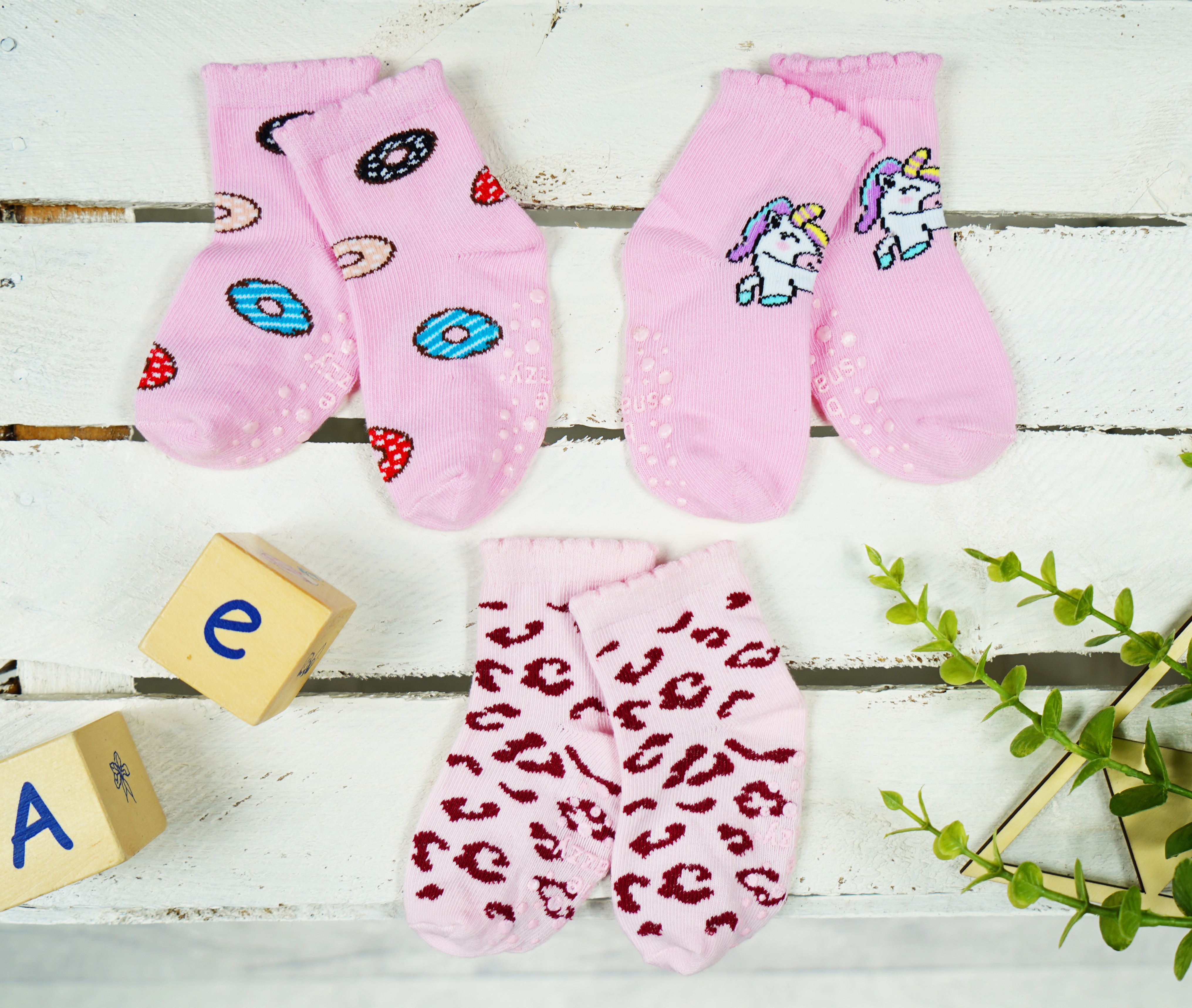 Skarpetki wzorzyste dziewczęce z wzorami i ABSem- komplet 3 par