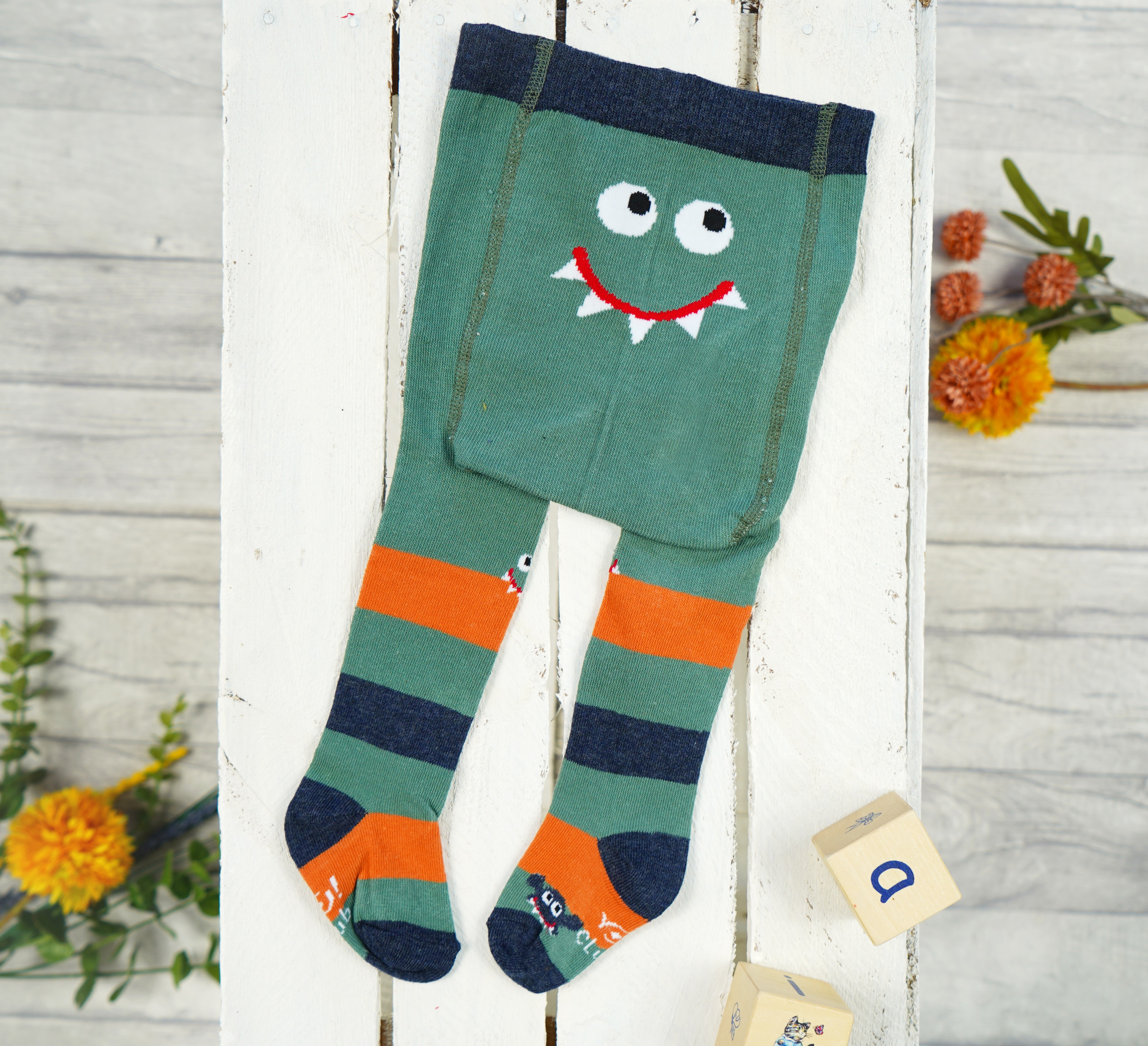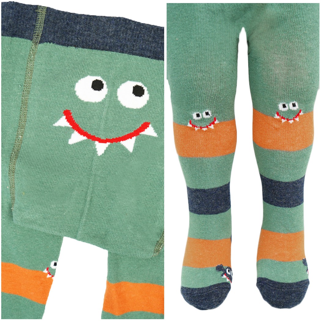 Zielone rajstopki bawełniane dla chłopca ze stworkiem.