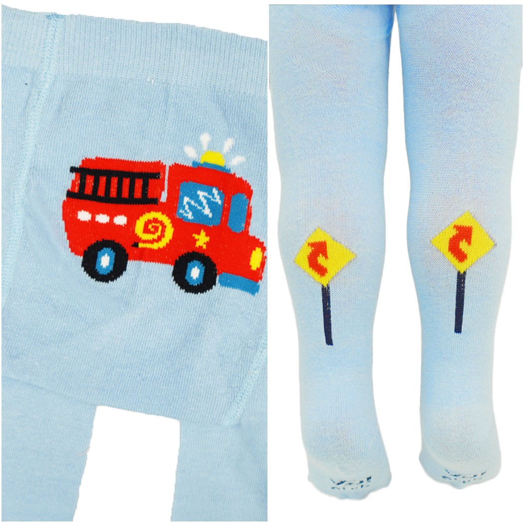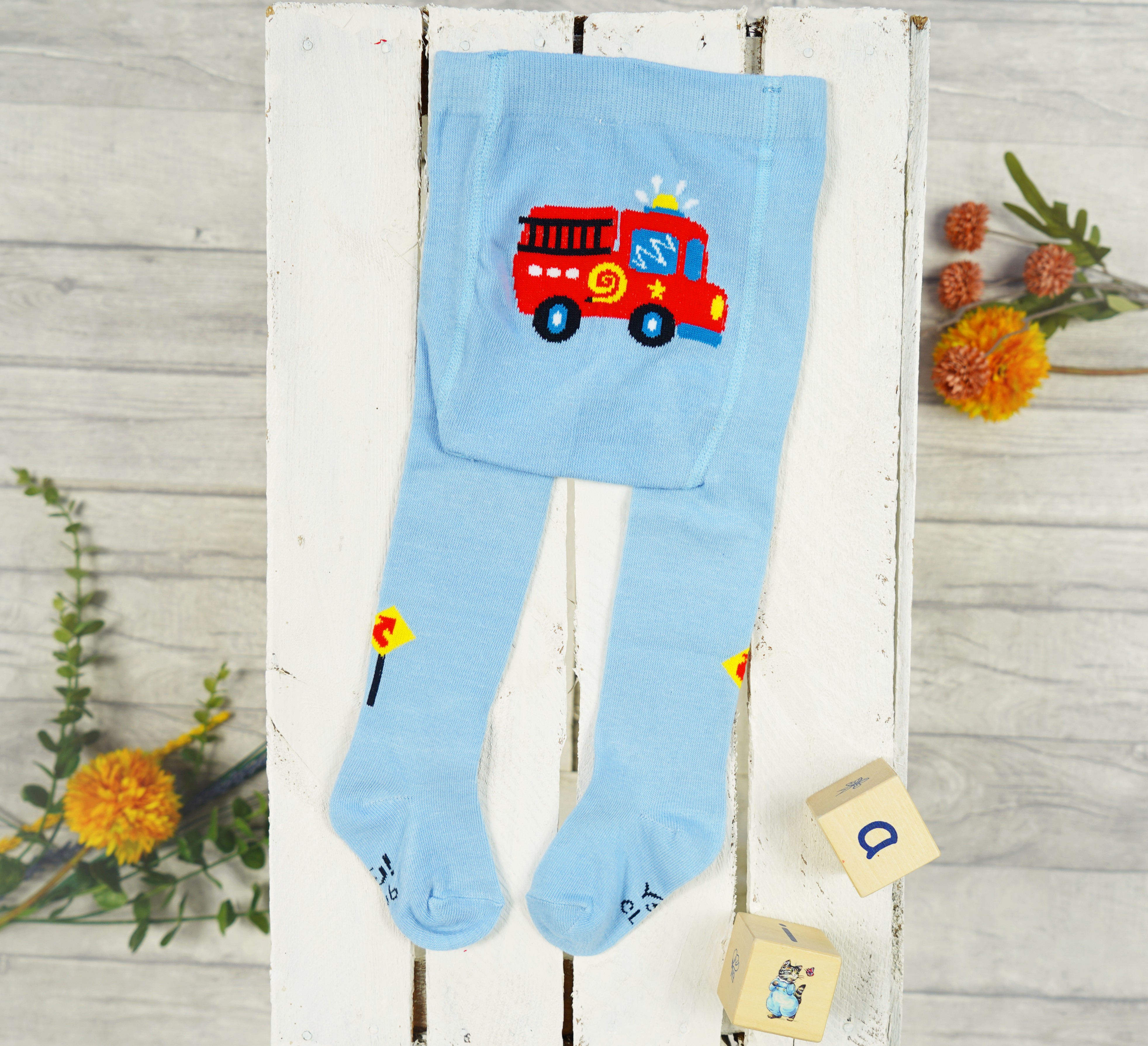 Błękitne rajstopki bawełniane dla chłopca z autem.