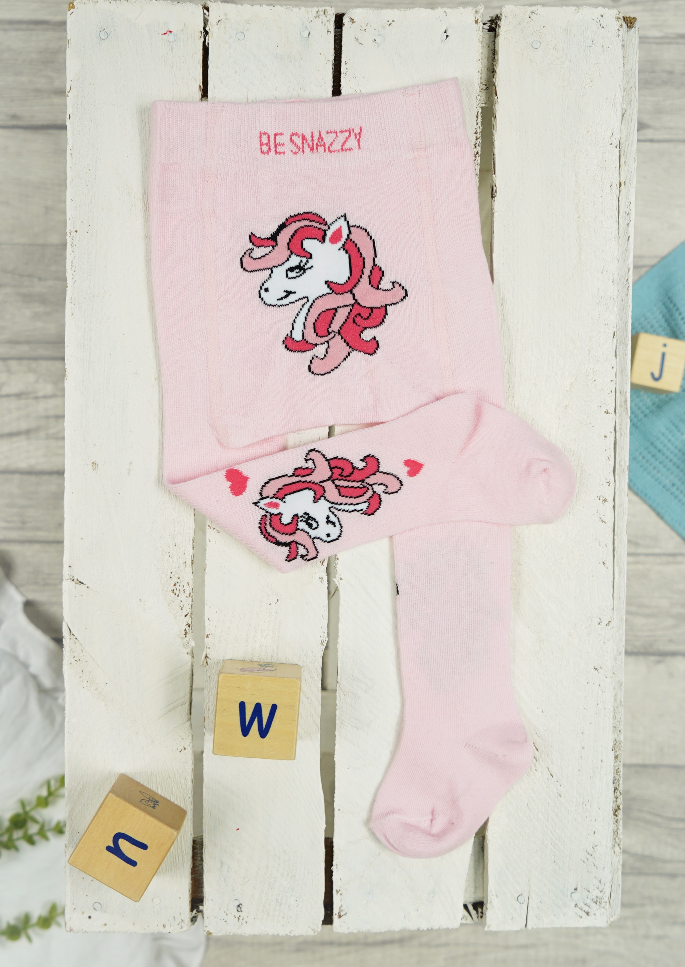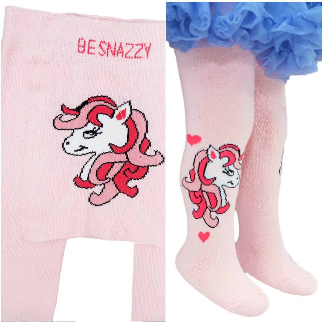 Różowe rajstopki bawełniane dla dziewczynki z konikiem.