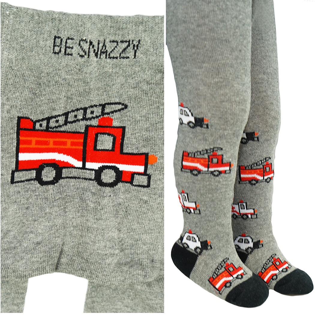 Szare rajstopki bawełniane dla chłopca ze strażą pożarną i policją.