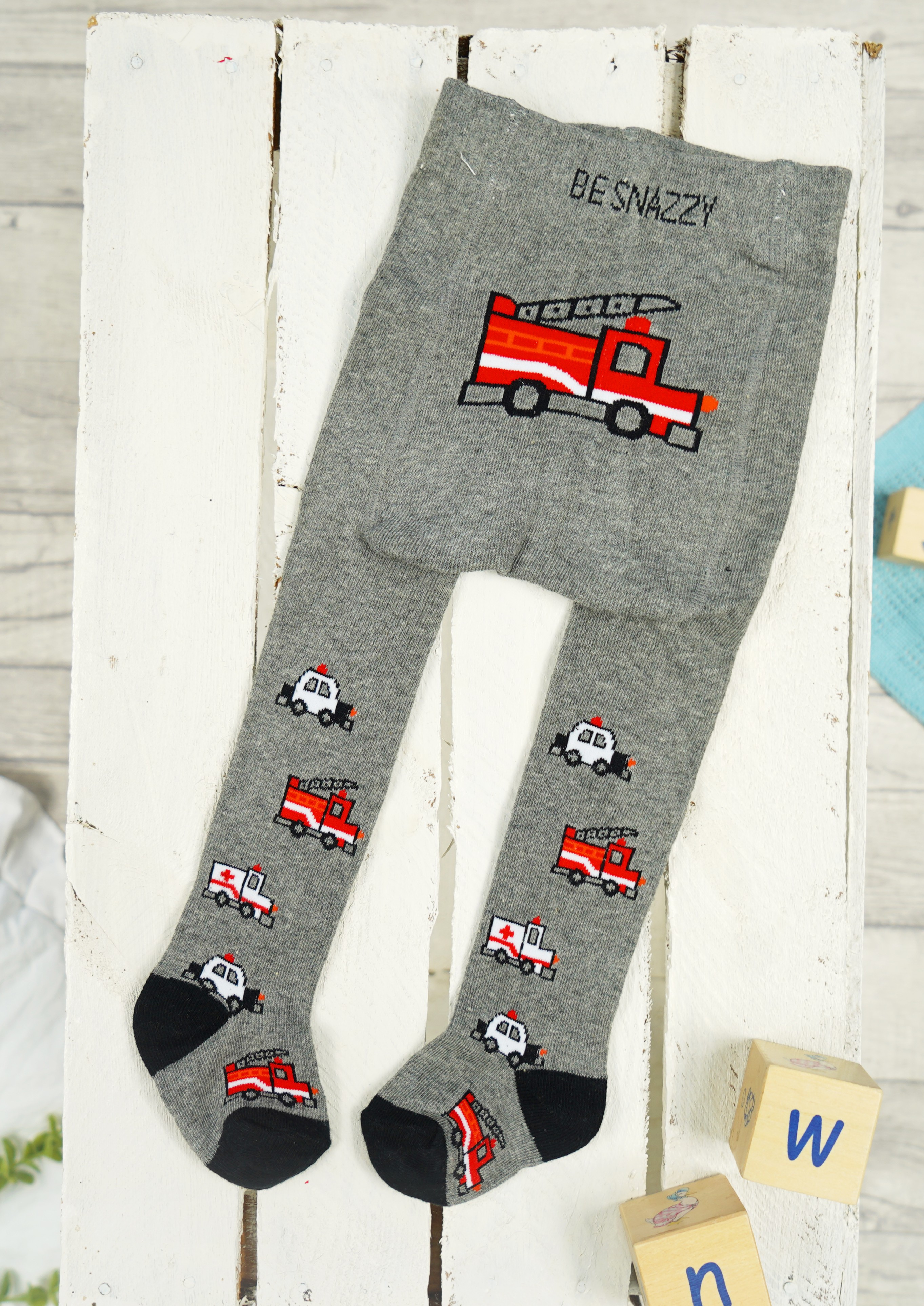 RAJSTOPY chłopięce szare ze strażą pożarną wzór 647