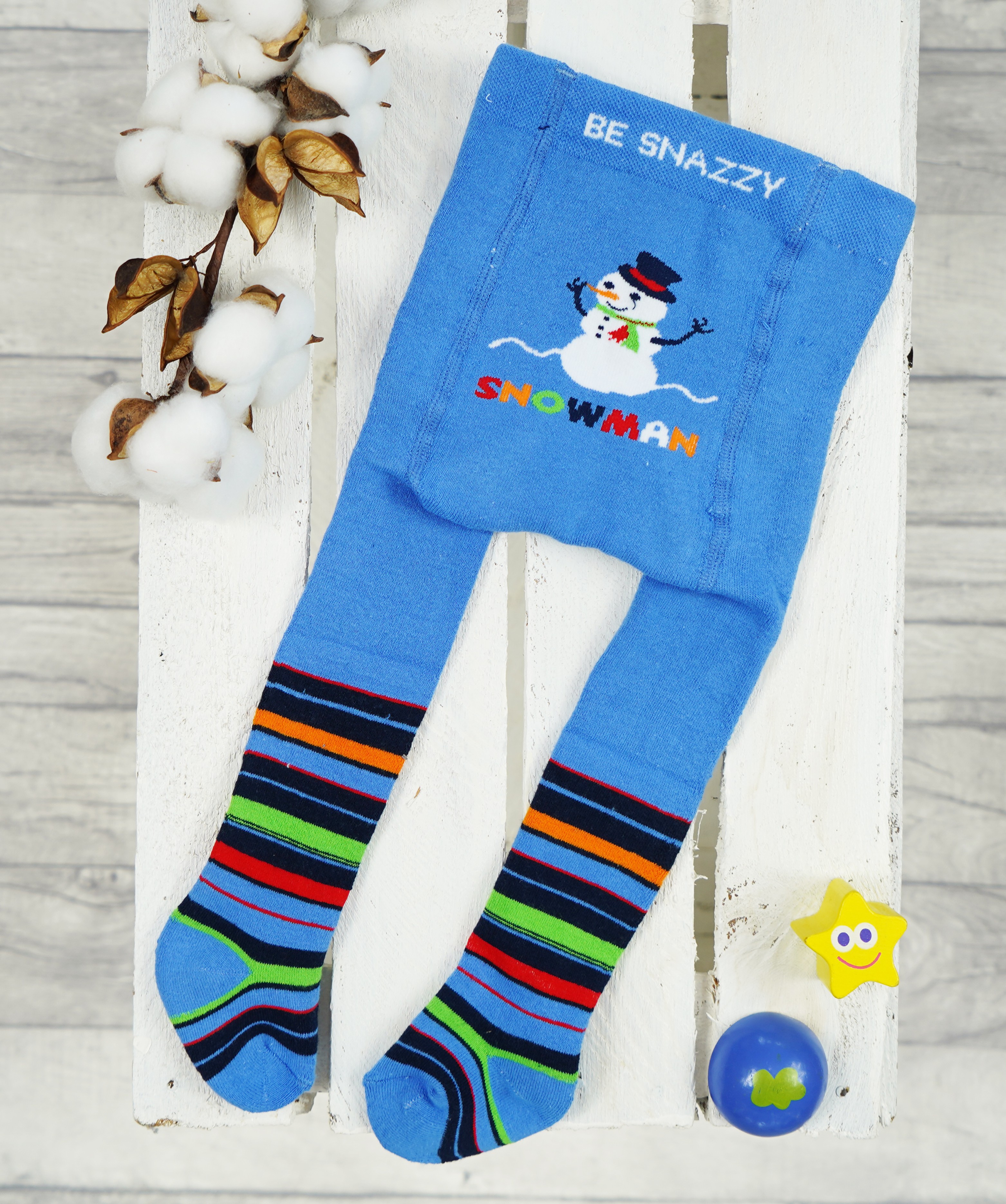 Niebieskie rajstopki frotte dla chłopca z bałwankiem.