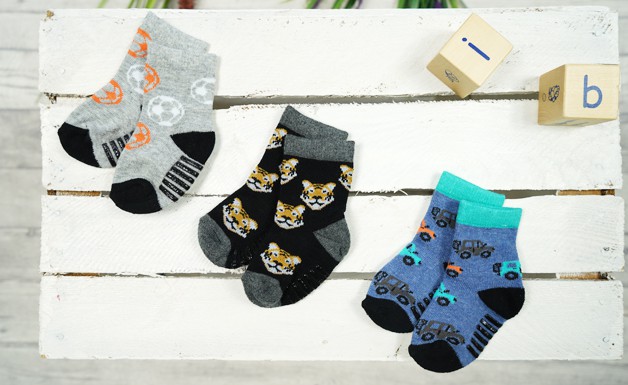 Skarpetki z motywem: piłek, tygrysów i samochodów nie tylko jako ozdoba, ale przede wszystkim pełnią funkcję ochronną. Skarpety bawełniane dla chłopca przyczyniają się do utrzymania prawidłowej temperatury ciała dziecka. Zapewniają doskonały przepływ powietrza, dlatego można nosić je nawet w bardzo ciepłe dni.