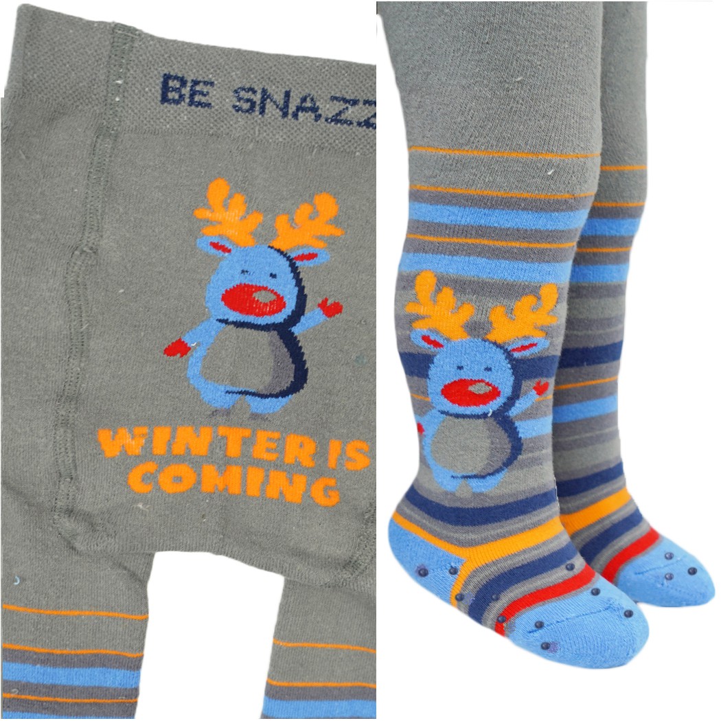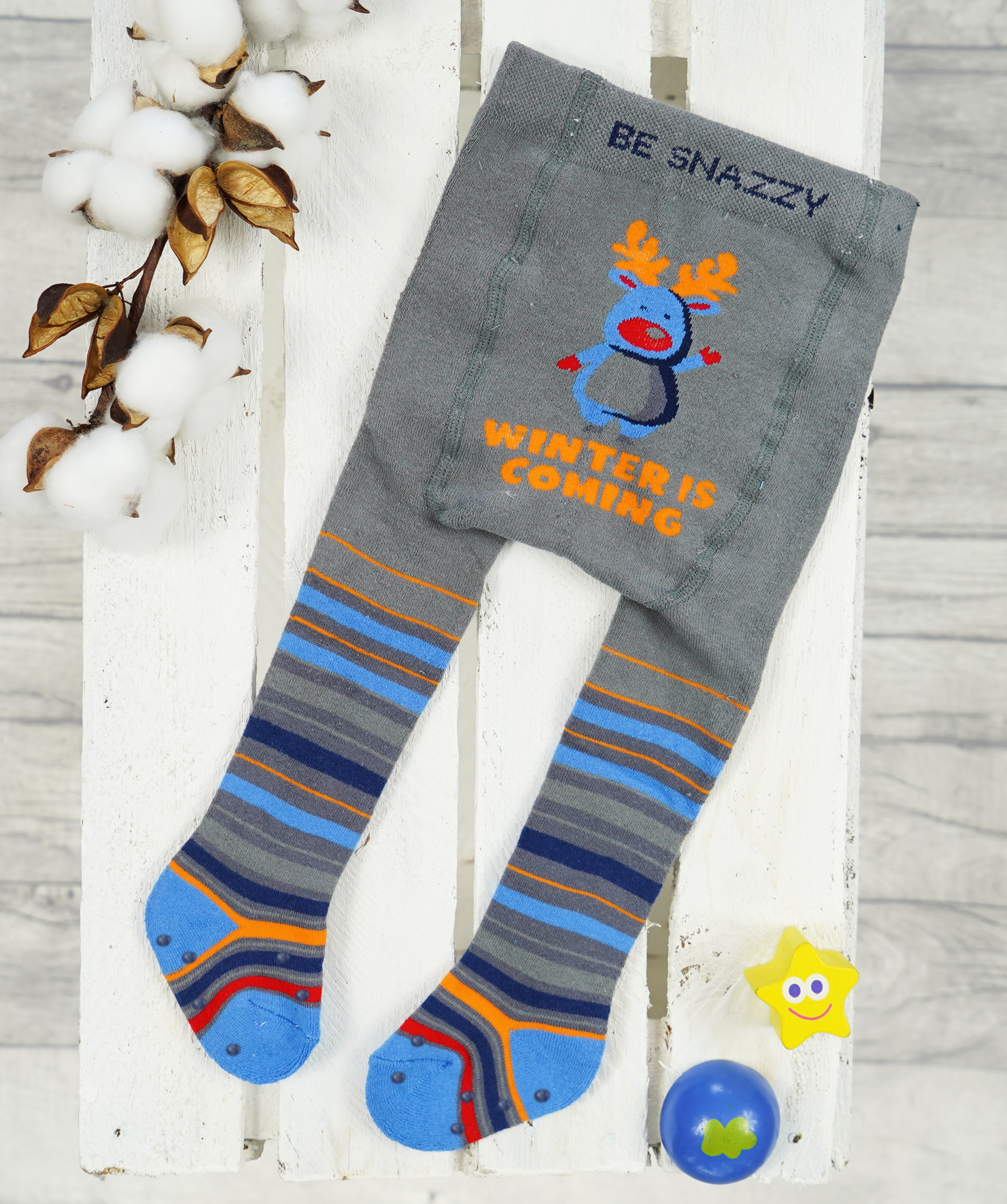 RAJSTOPY frotte do RACZKOWANIA GRUBE szare ABS z reniferem winter wzór 616