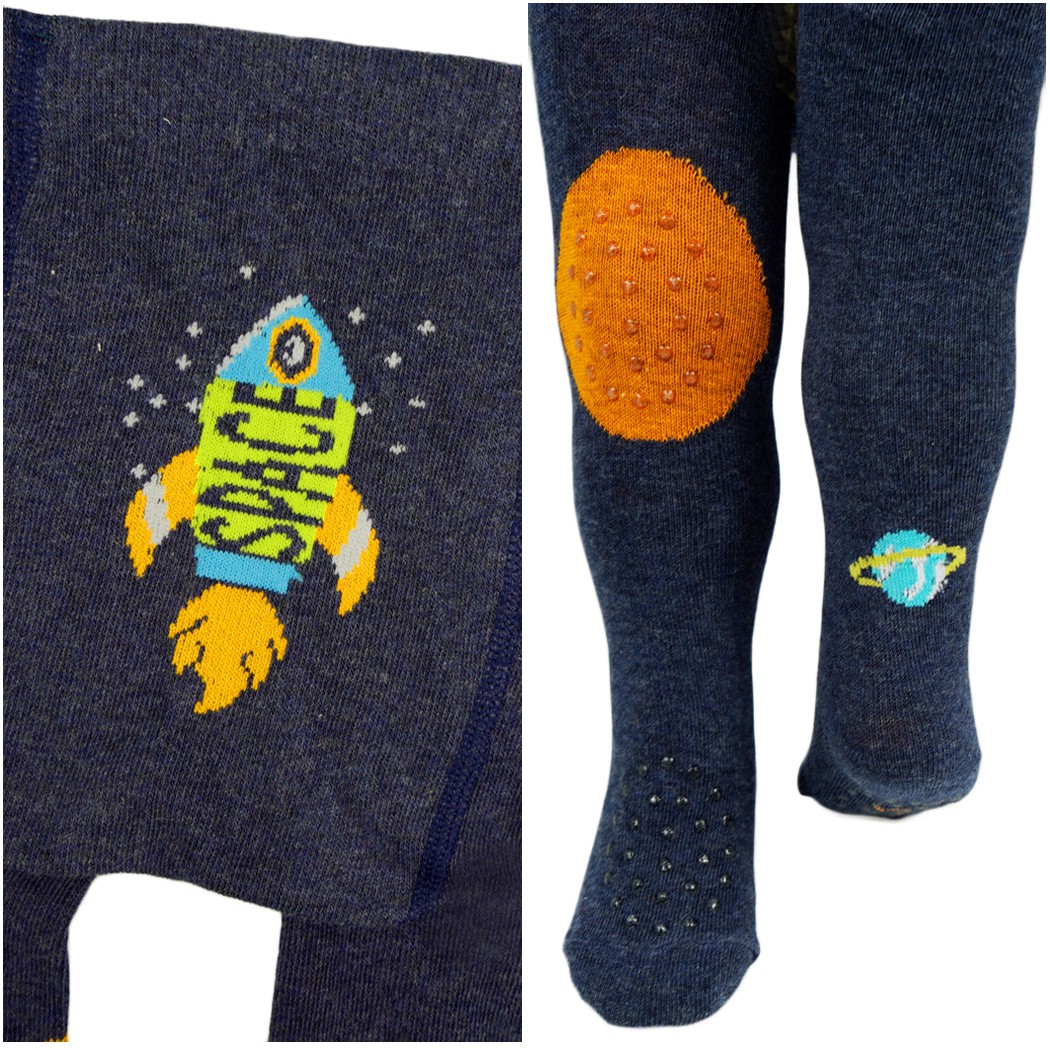Rajstopki chłopięce, które dobrze dopasowują się do ciała i nie krępują ruchów, dzięki czemu Twoja pociecha może brykać do woli. Antypoślizgowe gumowe kropeczki ABS na stopach z przodu i od spodu jak również na kolankach zapewniają świetną przyczepność na każdej powierzchni oraz pozwolą bezpiecznie poznawać otoczenie, a maluszek nie pościera sobie kolan.