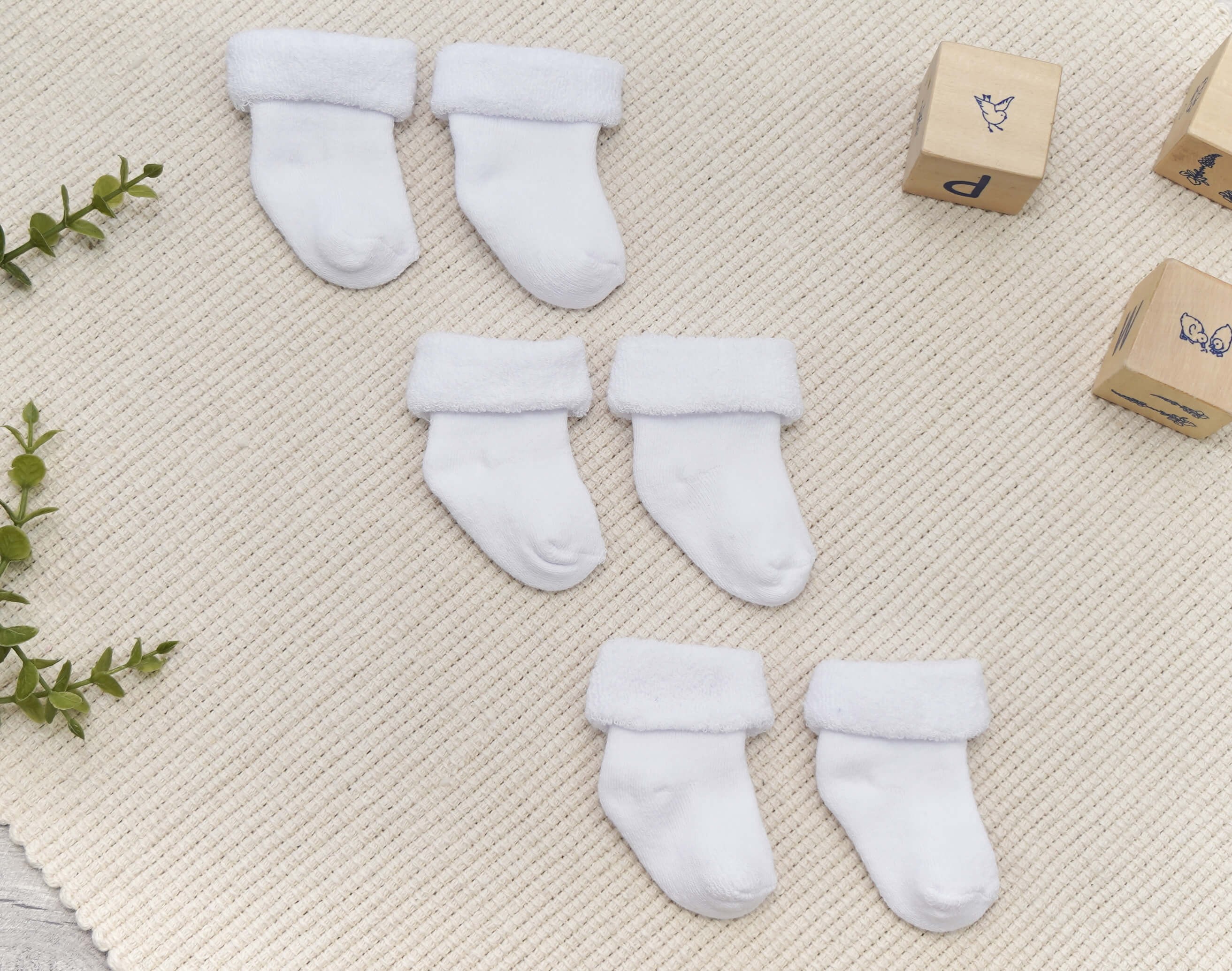 Skarpetki niemowlęce służą nie tylko jako ozdoba, ale przede wszystkim pełnią funkcję ochronną. Skarpety bawełniane przyczyniają się do utrzymania prawidłowej temperatury ciała dziecka. Zapewniają doskonały przepływ powietrza dlatego można nosić je nawet w bardzo ciepłe dni. Skarpetki dla niemowlaka to obowiązkowy element garderoby już od narodzin. Oferowany produkt to 3 pary bawełnianych skarpetek frotte dla niemowląt. Delikatny ściągacz nie uciska niemowlęcych nóżek.