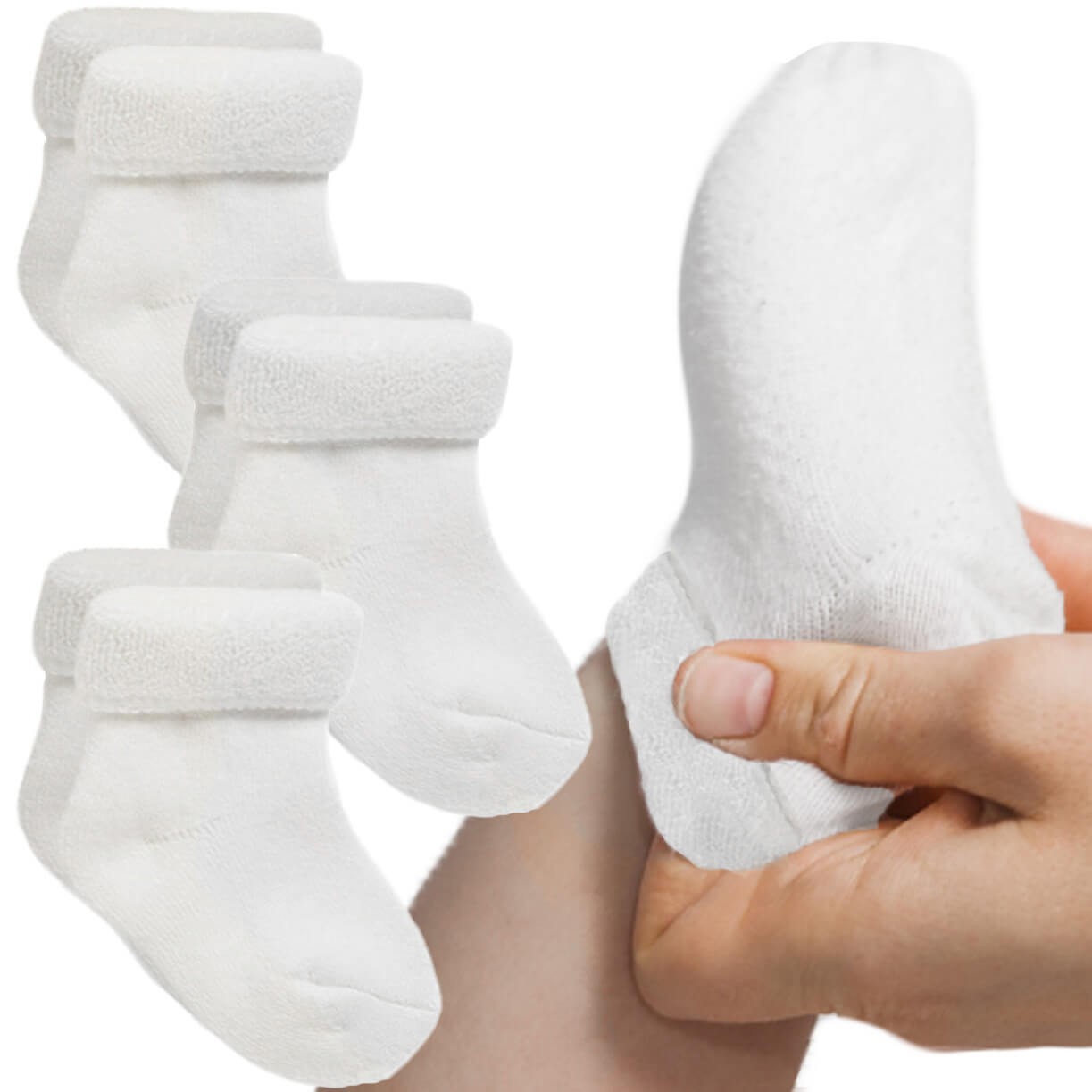 3PAK białe skarpetki niemowlęce FROTTE bezuciskowe ciepłe bawełniane