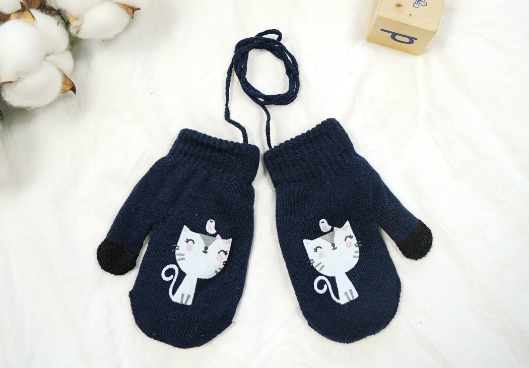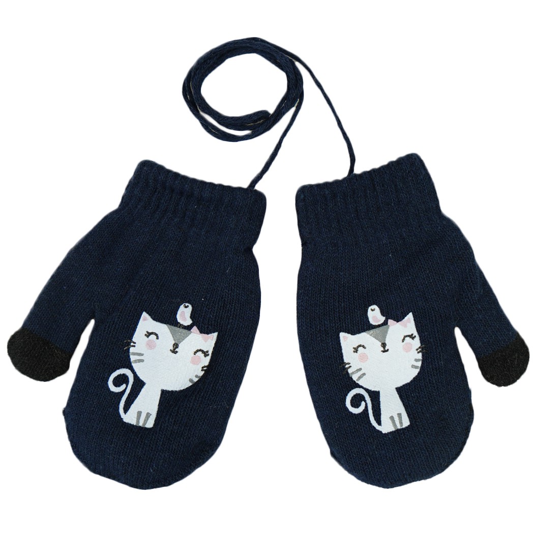 Cieplutkie granatowe rękawiczki z jednym palcem i aplikacją kotka.