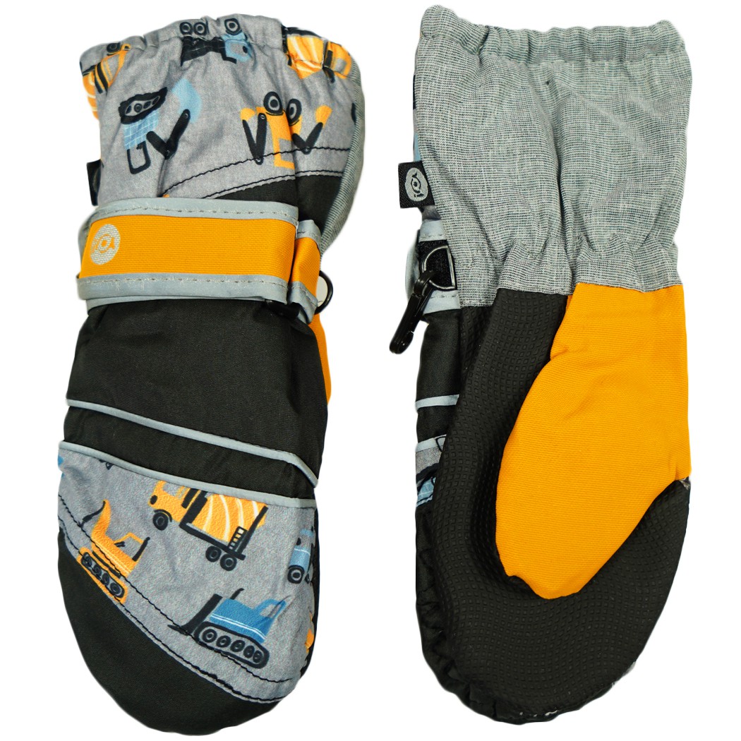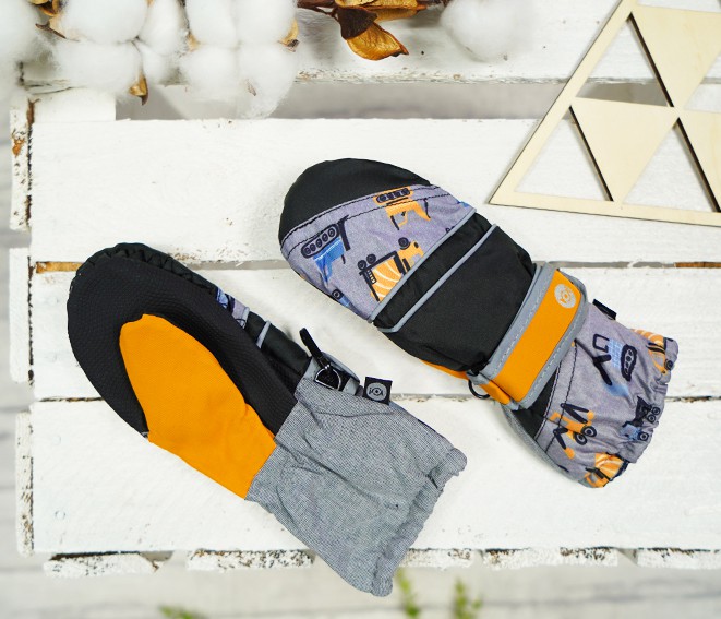 Szaro- pomarańczowe rękawiczki narciarskie w koparki i ciężarówki.