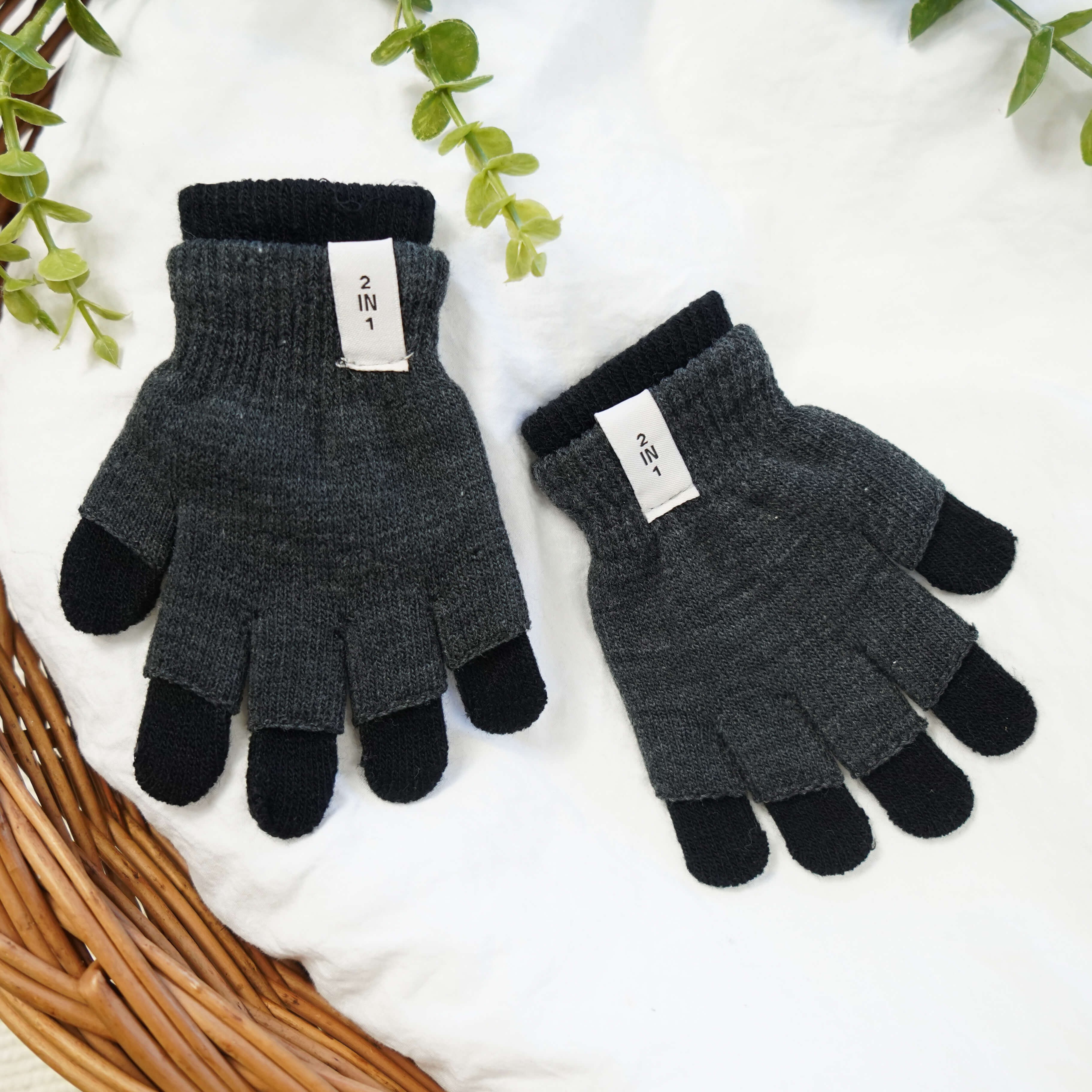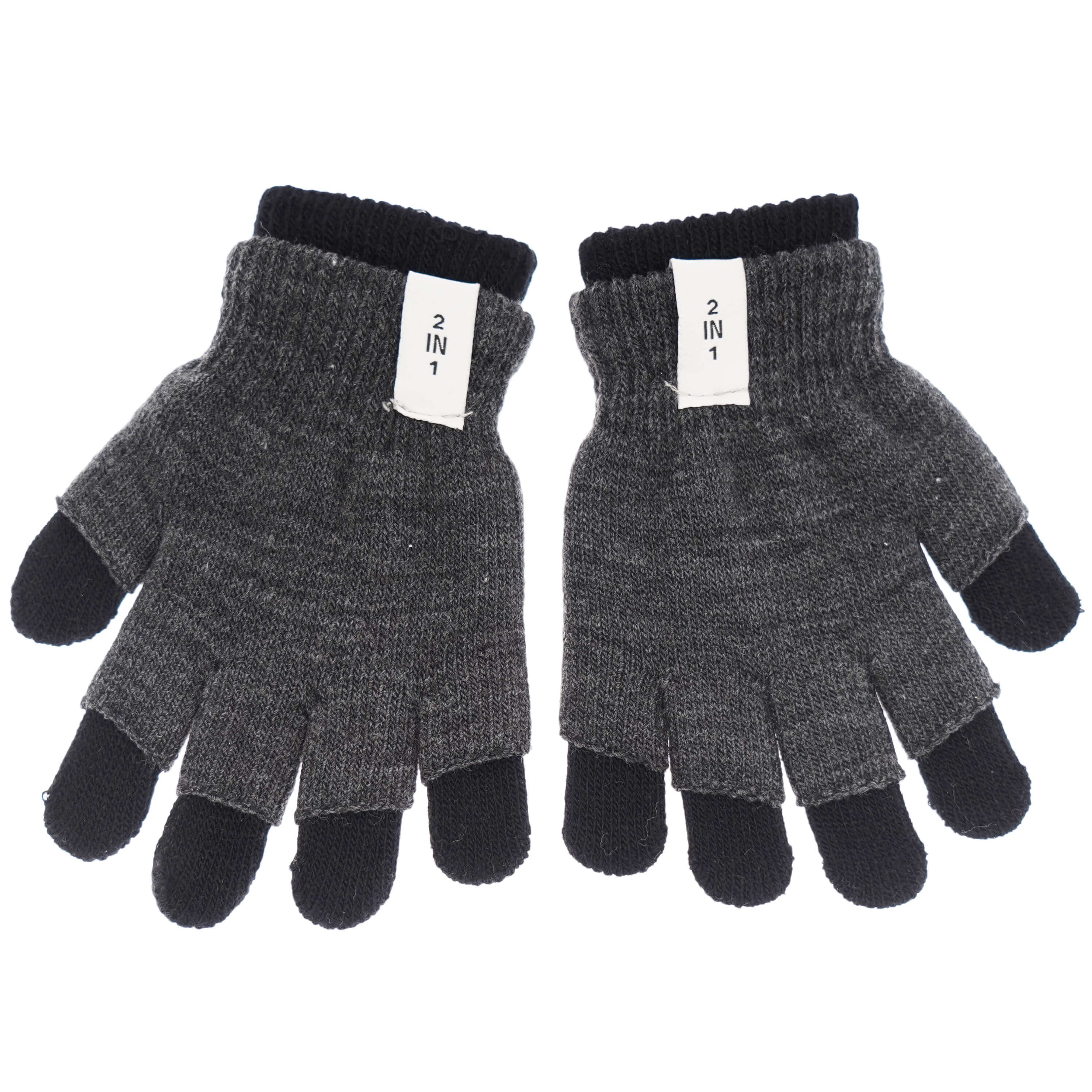 Grafitowo- czarne chłopięce rękawiczki podwójne 2w1