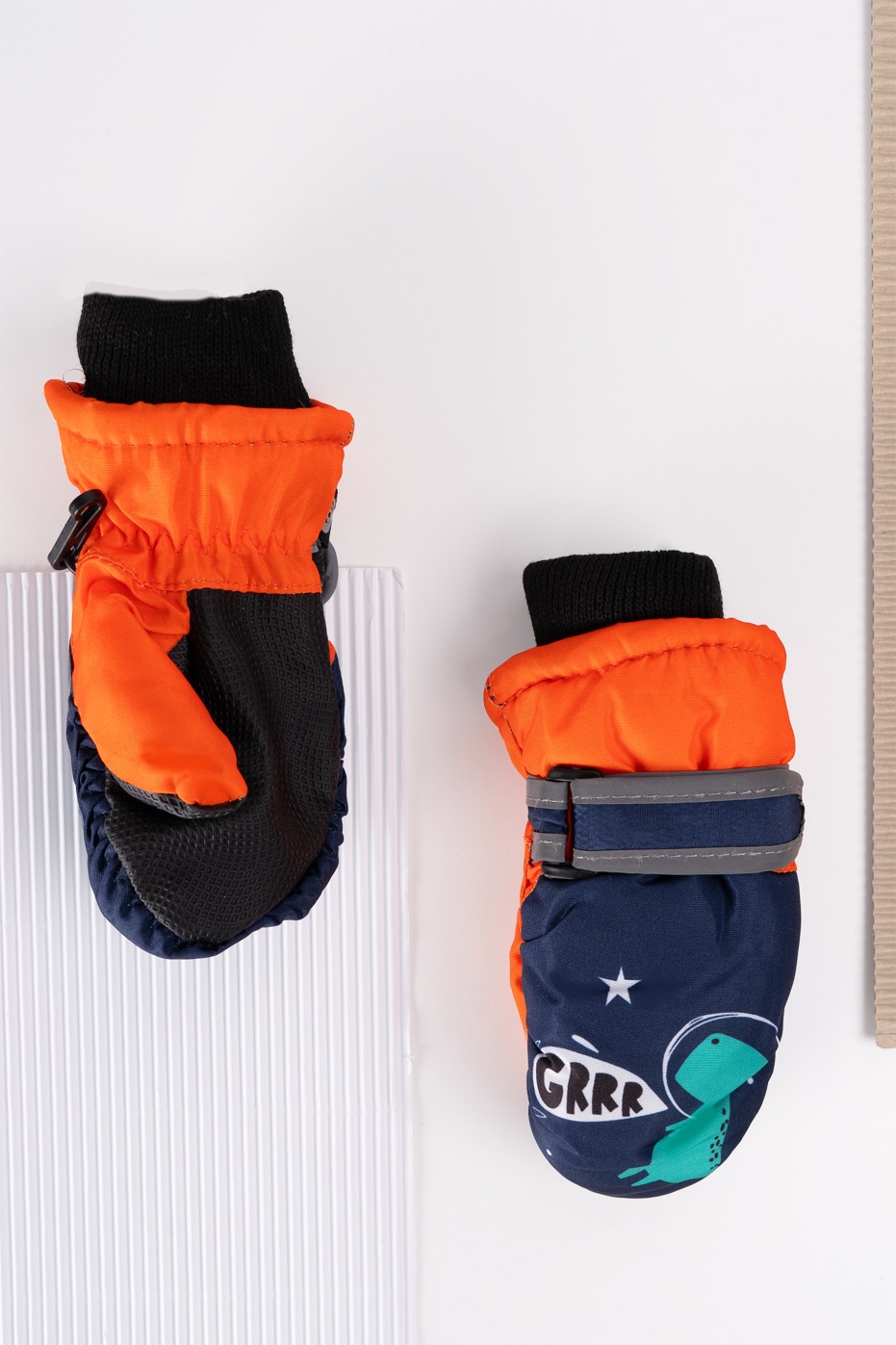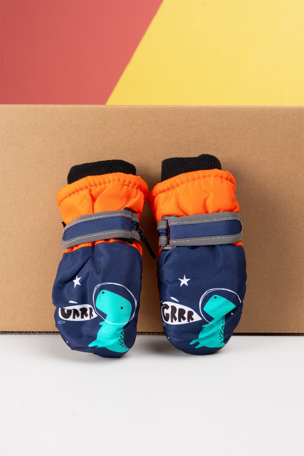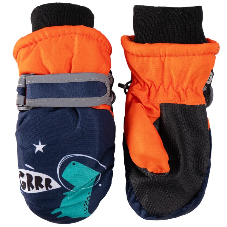 Granatowo- pomarańczowe rękawiczki narciarskie 1P Dino Grrr.. r.56-92