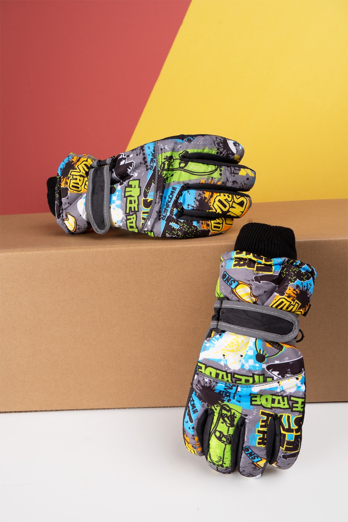 Szare rękawiczki narciarskie 5P graffiti r.122-134