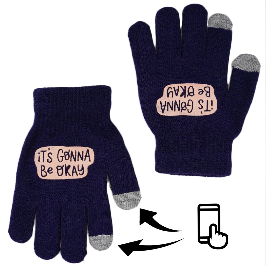 Granatowe rękawiczki dla dziewczynki z ABS i funkcją dotykową.