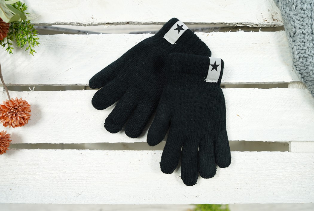 Czarne rękawiczki ocieplane 5P z naszywką GWIAZDA r.122-158