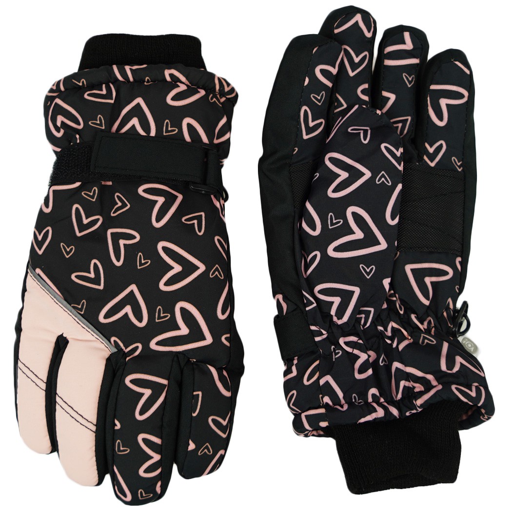 Rękawiczki narciarskie, czarno- różowe w serca.
